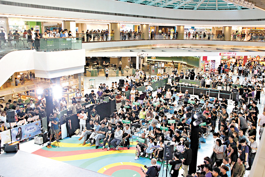 奧海城昨日下午直播香港賽艇代表趙顯臻男子單人雙槳艇比賽,以及香港女子劍擊代表江旻憓個人重劍比賽,不少市民聚集在奧海城二期地下中庭的大熒幕前觀看比賽。據了解,大熒幕正前方的「靚位」需要提前預約才能入場,事前三天開始預約,昨日60個入場名額已經被搶先預約。熒幕前大約有60名至70名市民,不斷揮舞着商場派發的加油棒,以及印有趙顯臻和江旻憓圖片和名字的打氣道具為香港代表加油。