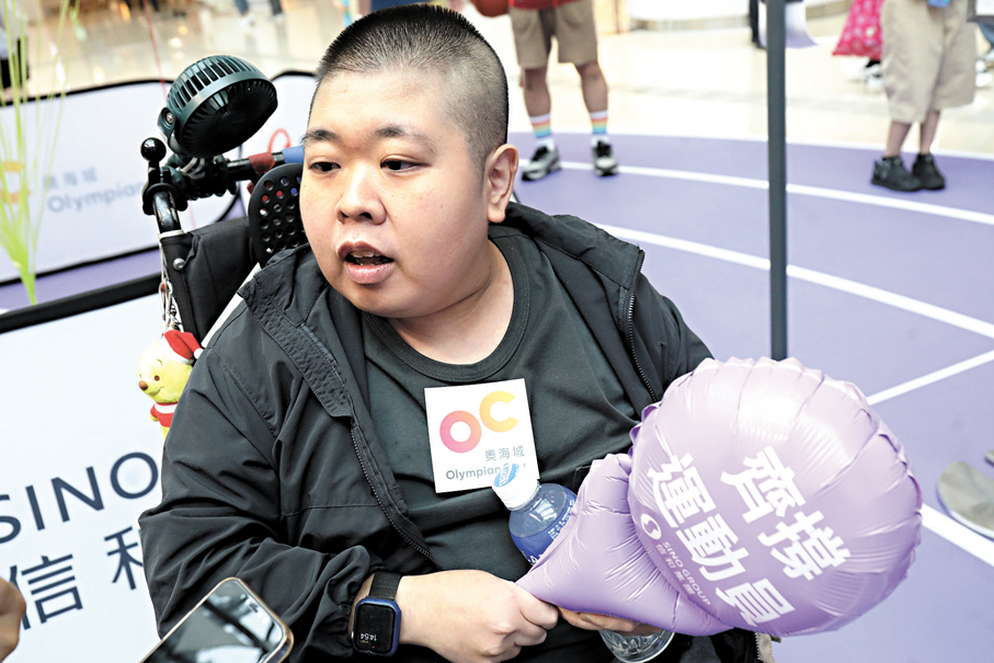 坐輪椅到奧海城觀賽的蘇先生,以往未曾在商場觀看奧運會賽事,今次專門提前預約報名,形容現場氣氛熱烈,與其他人一起大叫打氣,感覺非常開心。除了關注港隊外,他也十分關注國家隊女排的賽事,希望香港代表,以及國家隊代表可以拿到金牌。