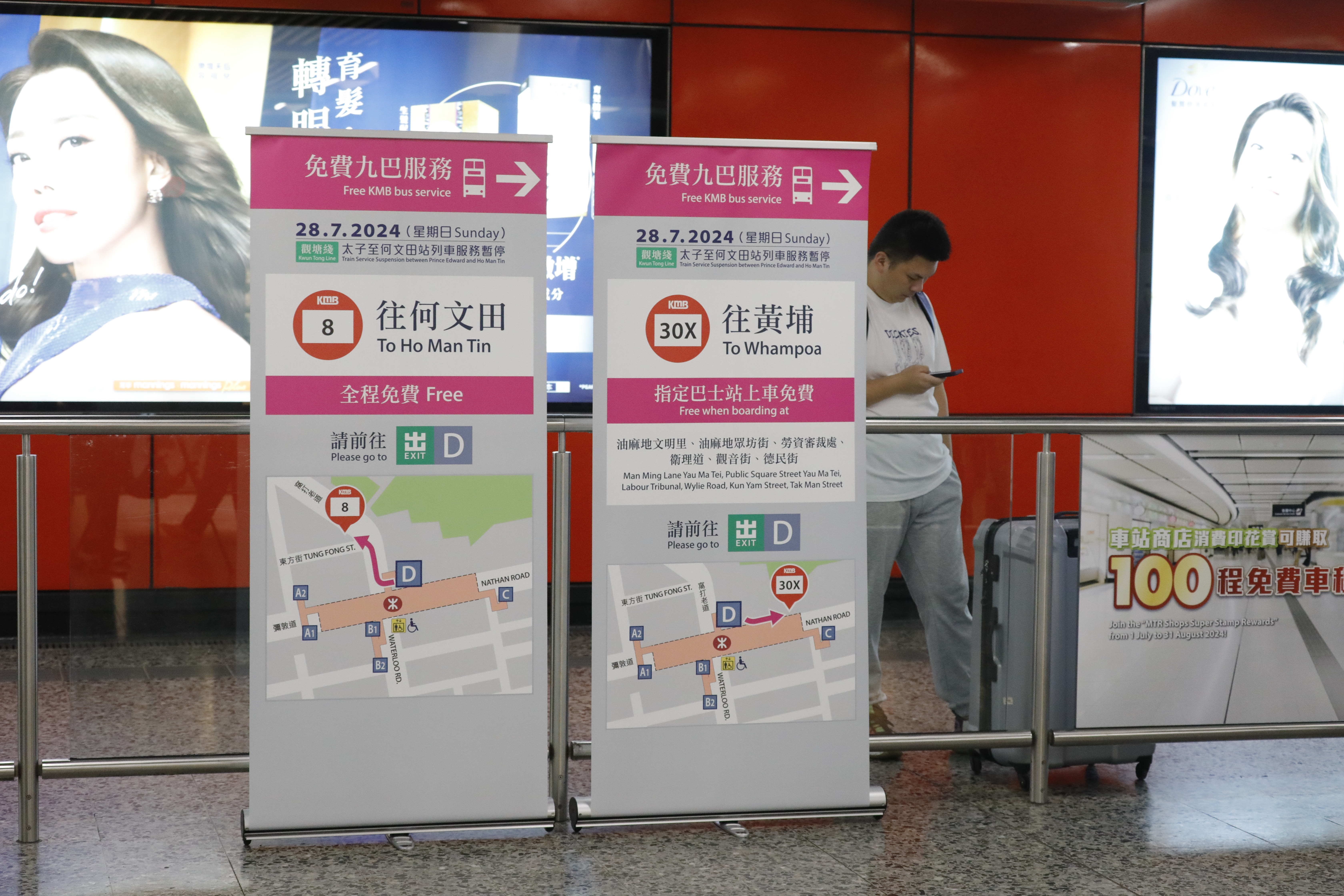 除了站內服務調動之外,港鐵還與九巴合作,提供額外的免費巴士服務,包括8號(全程免費)及30X號(指定巴士站上車免費)。身為巴士迷的歐先生大讚港鐵新安排,可以善用九巴的資源,不用特地調動車輛,安排接駁服務。乘搭30X到黃埔練習保齡球的梁先生認為,相關安排十分清晰,服務亦一流。