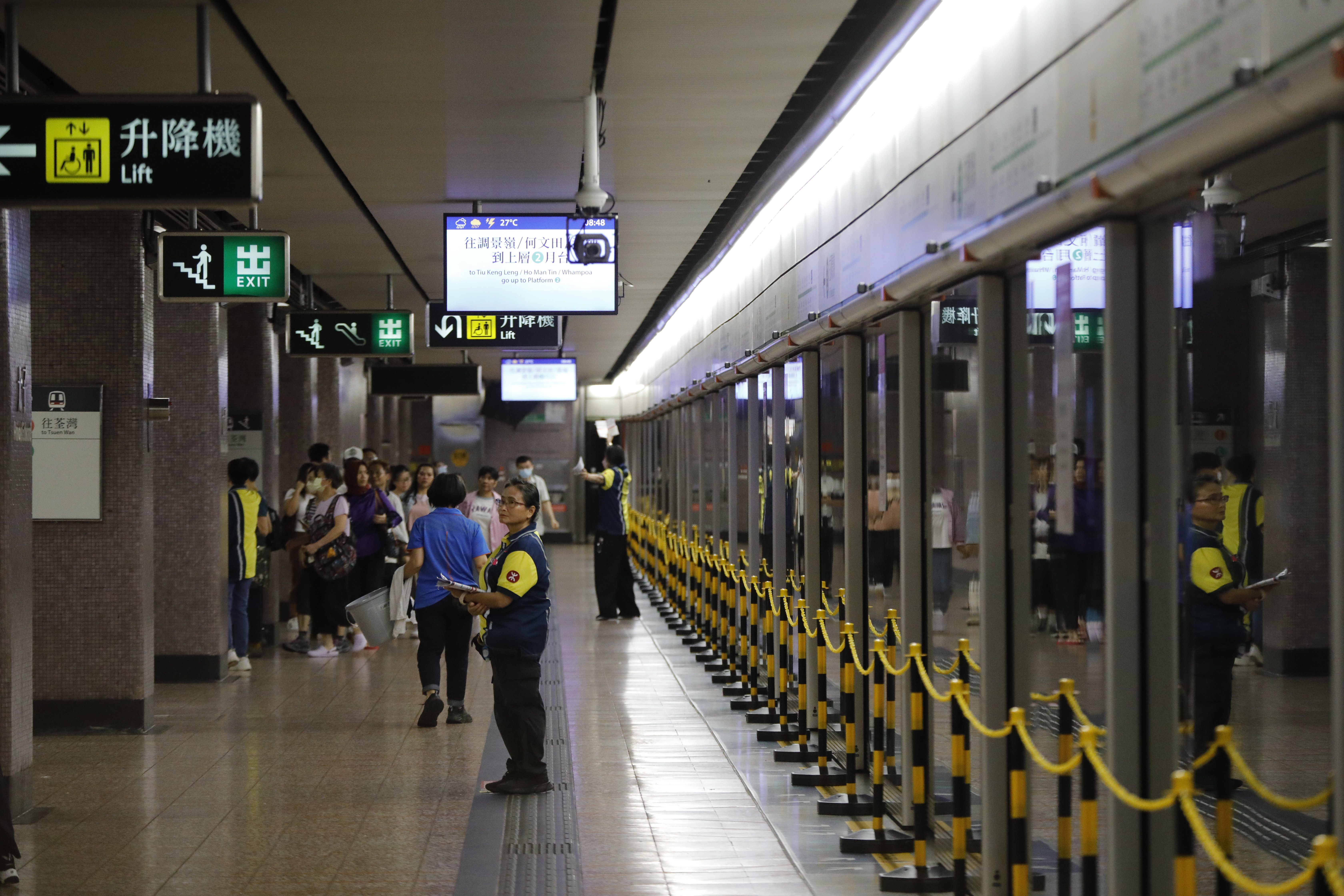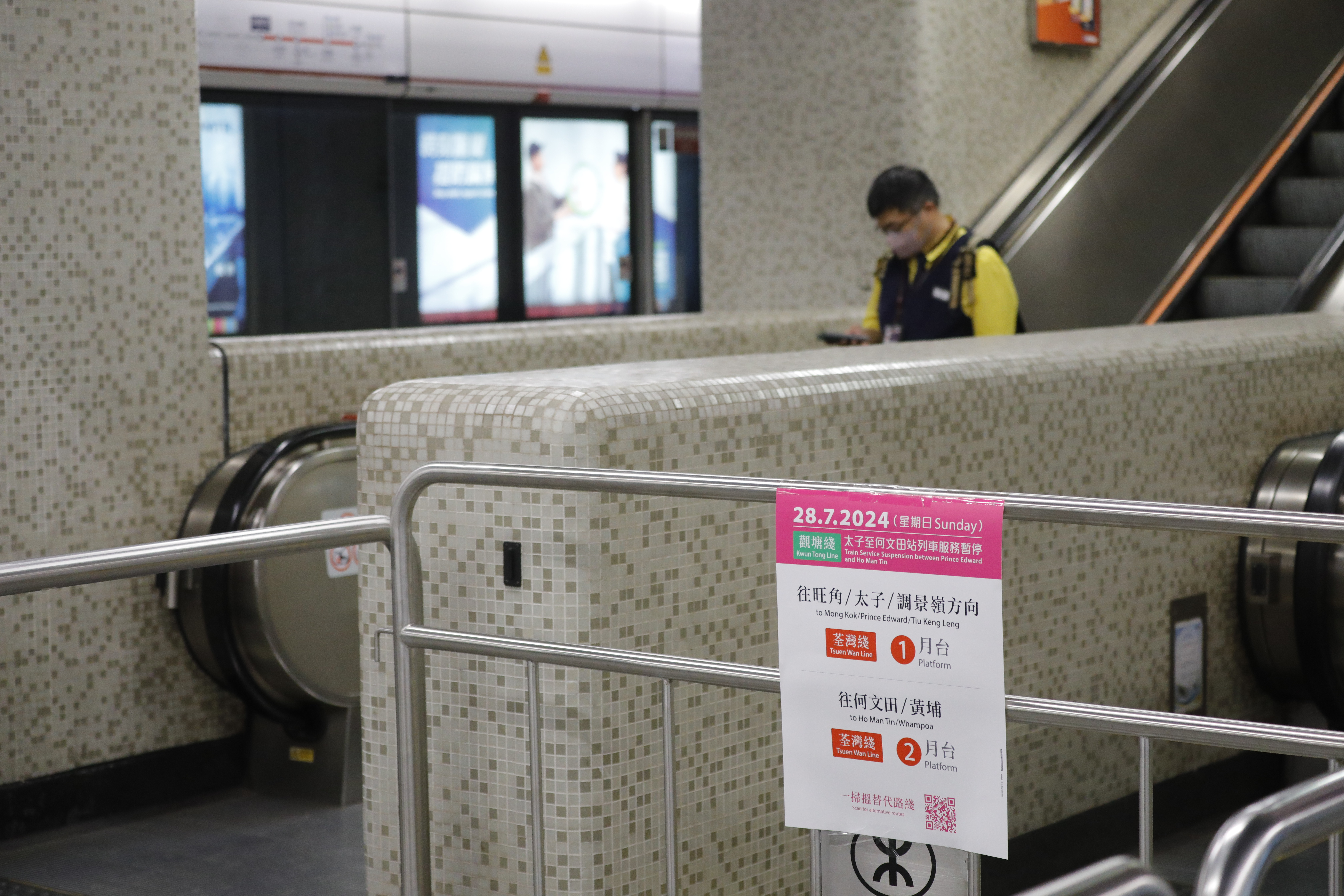 (大公文匯全媒體 記者 王俊傑)受大型基建設施更新工程影響,觀塘綫來往太子至何文田站的列車服務今日(28日)暫停,觀塘綫只會行走調景嶺至太子站,以及何文田至黃埔站路段。記者現場觀察到,港鐵不但設有站內廣播,而且在多個月台擺放指示牌,提醒乘客轉乘路線。與此同時,大批港鐵職員攜帶印有路線調動的中英雙語單張,解答乘客疑問,其間有少數族裔和外籍僱傭不知道新安排,職員亦能妥善回答問題。以客流量最多的太子站為例,記者估計,有超過30名工作員在現場維持秩序,早上時段未見月台出現混亂,人流大致暢順。