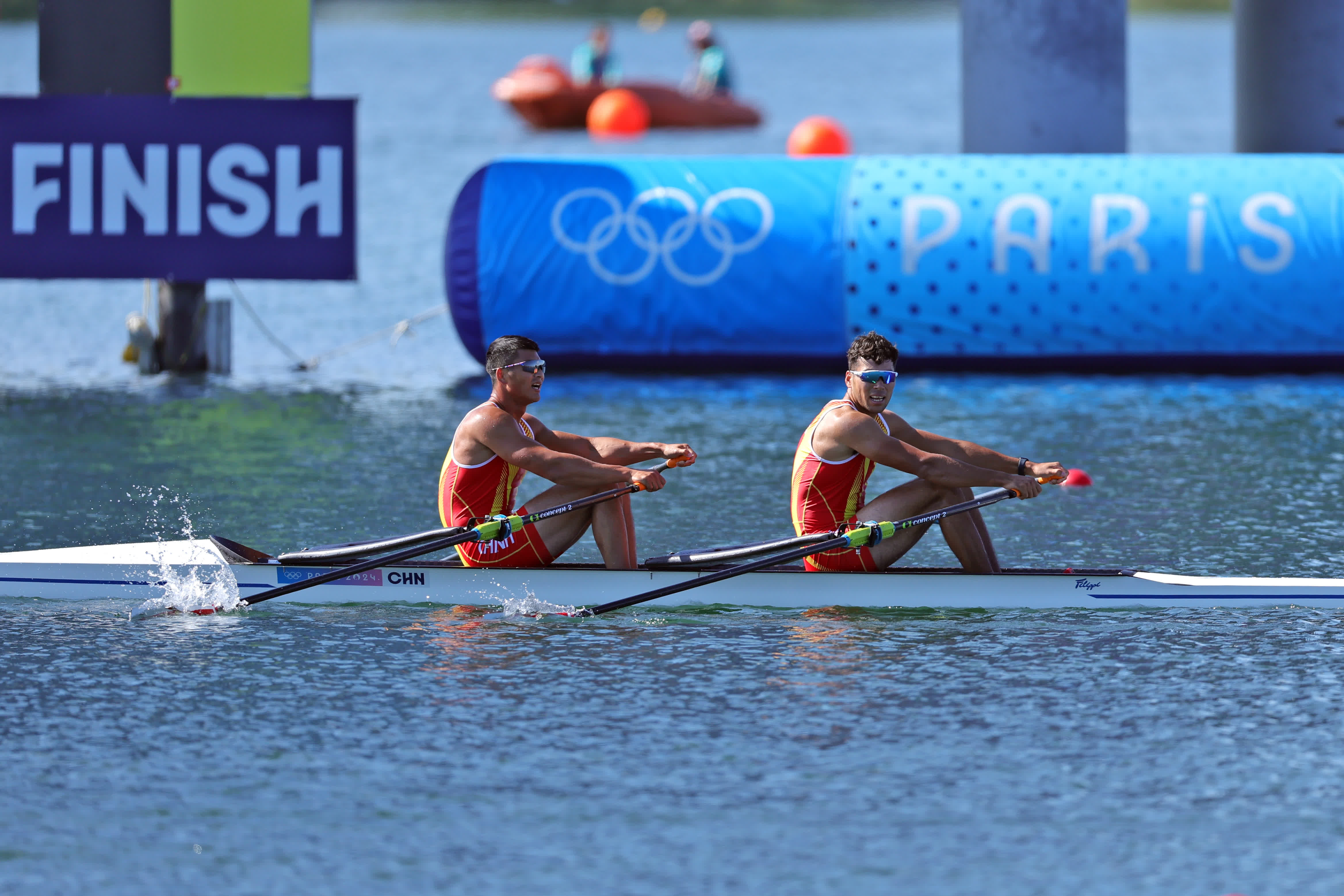男子雙人雙槳復活賽中,中國男隊「獨苗」劉治宇/阿迪里江·蘇里坦與塞爾維亞、德國及意大利隊選手爭奪3張半決賽入場券。中國隊組合雖出發稍顯落後,但他們在剩餘1500米的賽程中展現出較好的相持能力,始終保持在第二三位,最終以6分39秒06的成績位列小組第三,與塞爾維亞和德國隊選手攜手出線,挺進30日的半決賽。