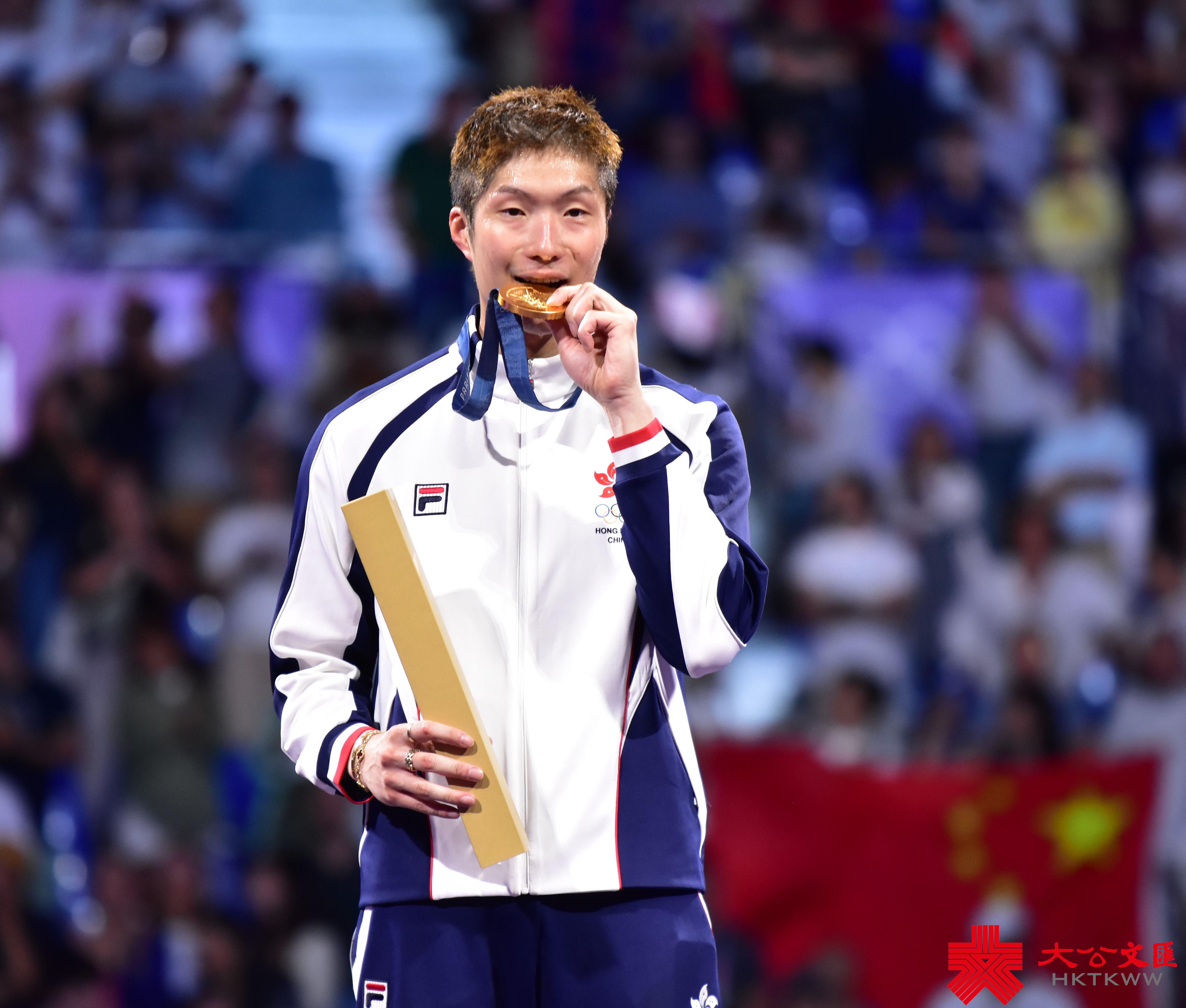 大公文匯全媒體報道,張家朗以衛冕之姿出戰巴黎奧運,接連擊敗強手殺入決賽,他與意大利劍手Filippo Macchi戰平14:14後,連續兩劍得分無效,港將頂住壓力果敢再出劍,最終以15:14擊敗對手奪金,成香港史上首位連續兩屆奪金運動員,再創歷史。他獲勝一刻舉起象徵勝利的「V」字手勢,同時意味個人第二面金牌。