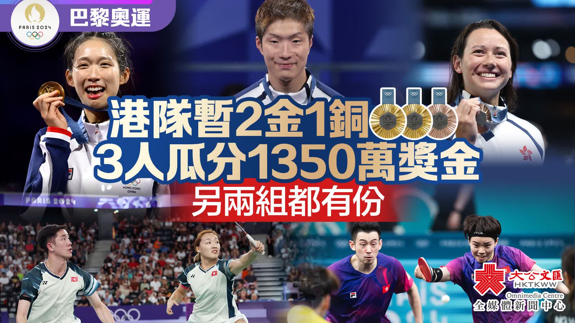 關鍵詞:巴黎奧運馬會獎金張家朗何詩蓓江旻憓
