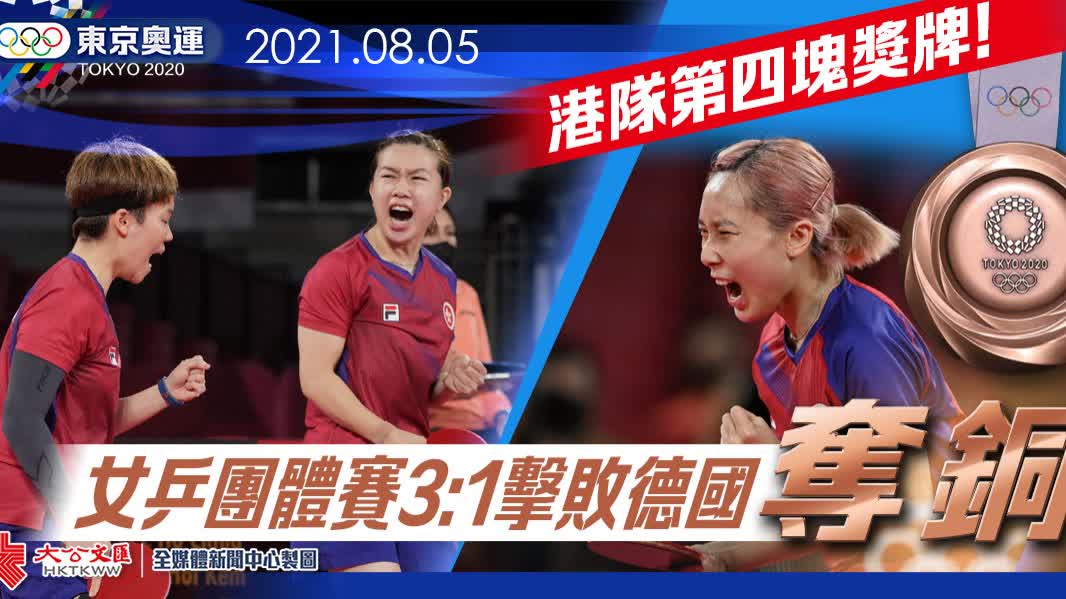在乒乓球女子團體賽中,中國香港隊終於摘得銅牌,這是中國香港女乒在奧運賽場上贏得的首枚獎牌!