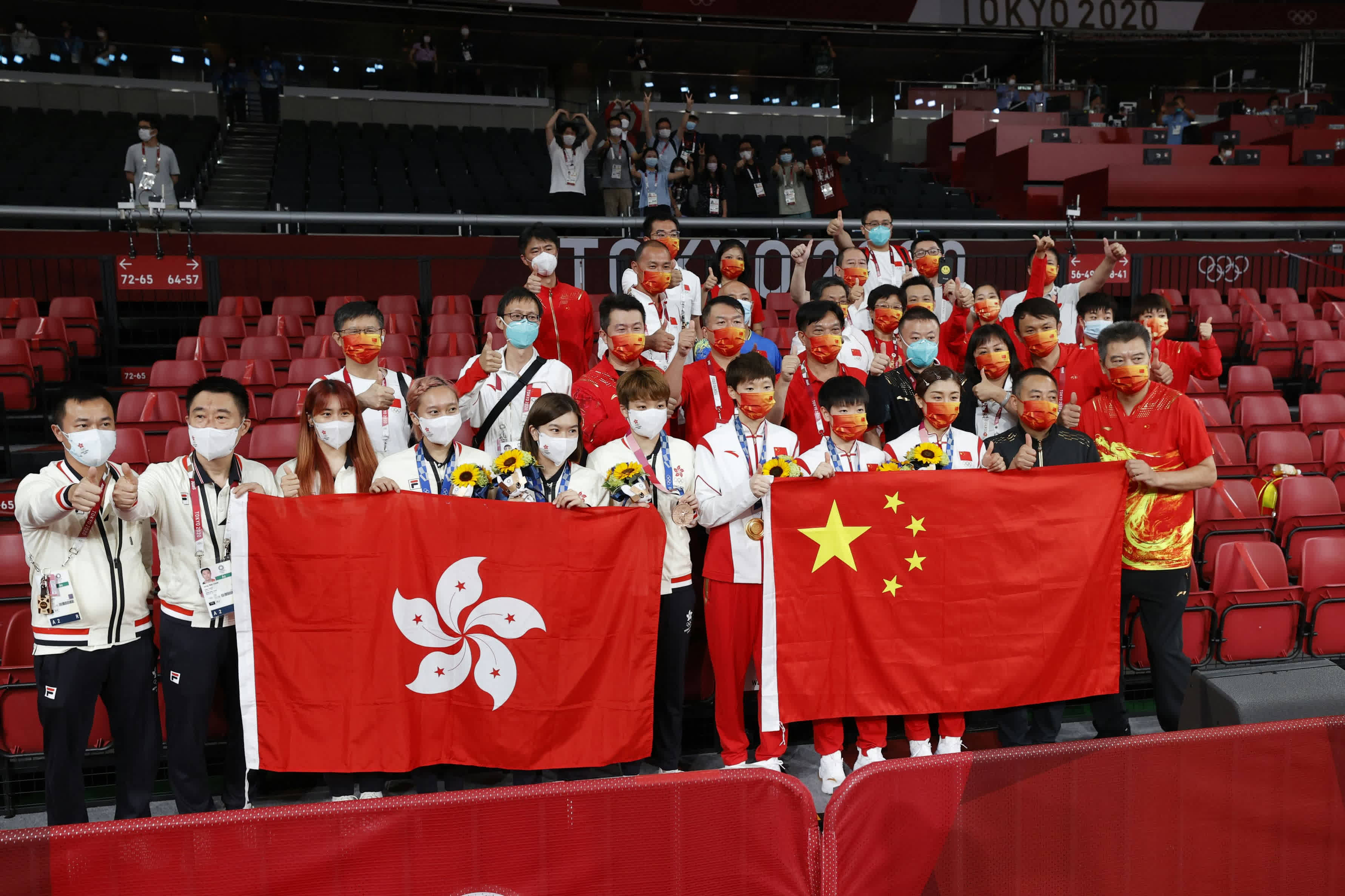 女團決賽之後,中國乒協主席劉國梁邀請中國香港隊一同合影:「我們是一起的,是一家人」。