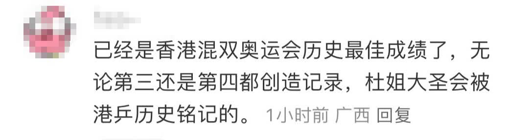 在杜凱琹的社交平台評論區,內地網友齊撐港隊:打滿7局、把「神秘之師」朝鮮隊的短板都打出來了、無論第三還是第四都創造歷史!