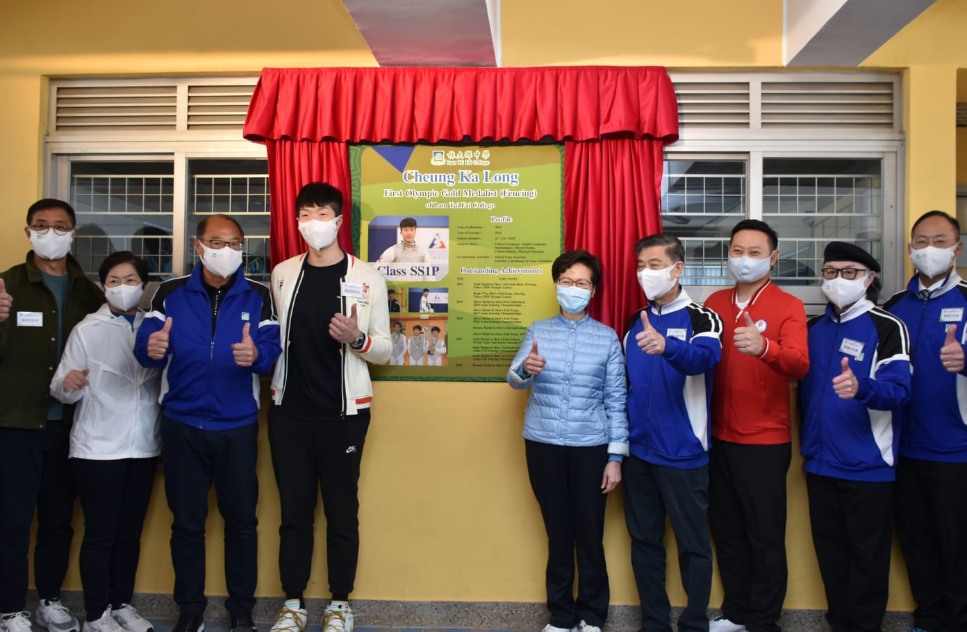 大公文匯全媒體今日更收到林大輝中學提供的張家朗中學校園照,其中一張是「張家朗在中學時校隊劍擊比賽留影」。當時的張家朗一臉青澀,身穿深色隊服,十分幹練有精氣神。合影中三位獲獎選手拿獎盃合影,可見他早在讀中學時,劍術已嶄露頭角。