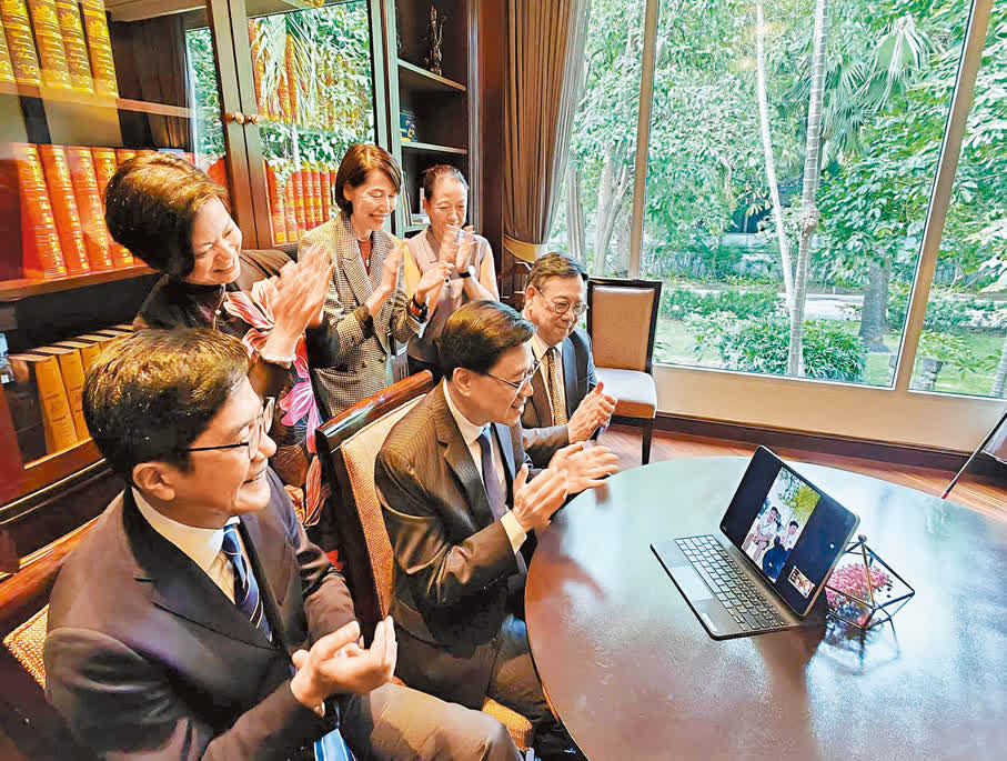 正在外訪的李家超昨日與張家朗透過視像對話,李家超對張家朗和他的教練致以衷心祝賀,讚揚張家朗越戰越勇,繼2020年東京奧運會為香港劍擊運動締造歷史,在巴黎奧運再創輝煌成績,勇奪金牌,實至名歸。卓越的成績令人振奮,讓香港市民引以為榮。張家朗說,比賽時希望「打好每一劍,不會這麼容易放棄」。