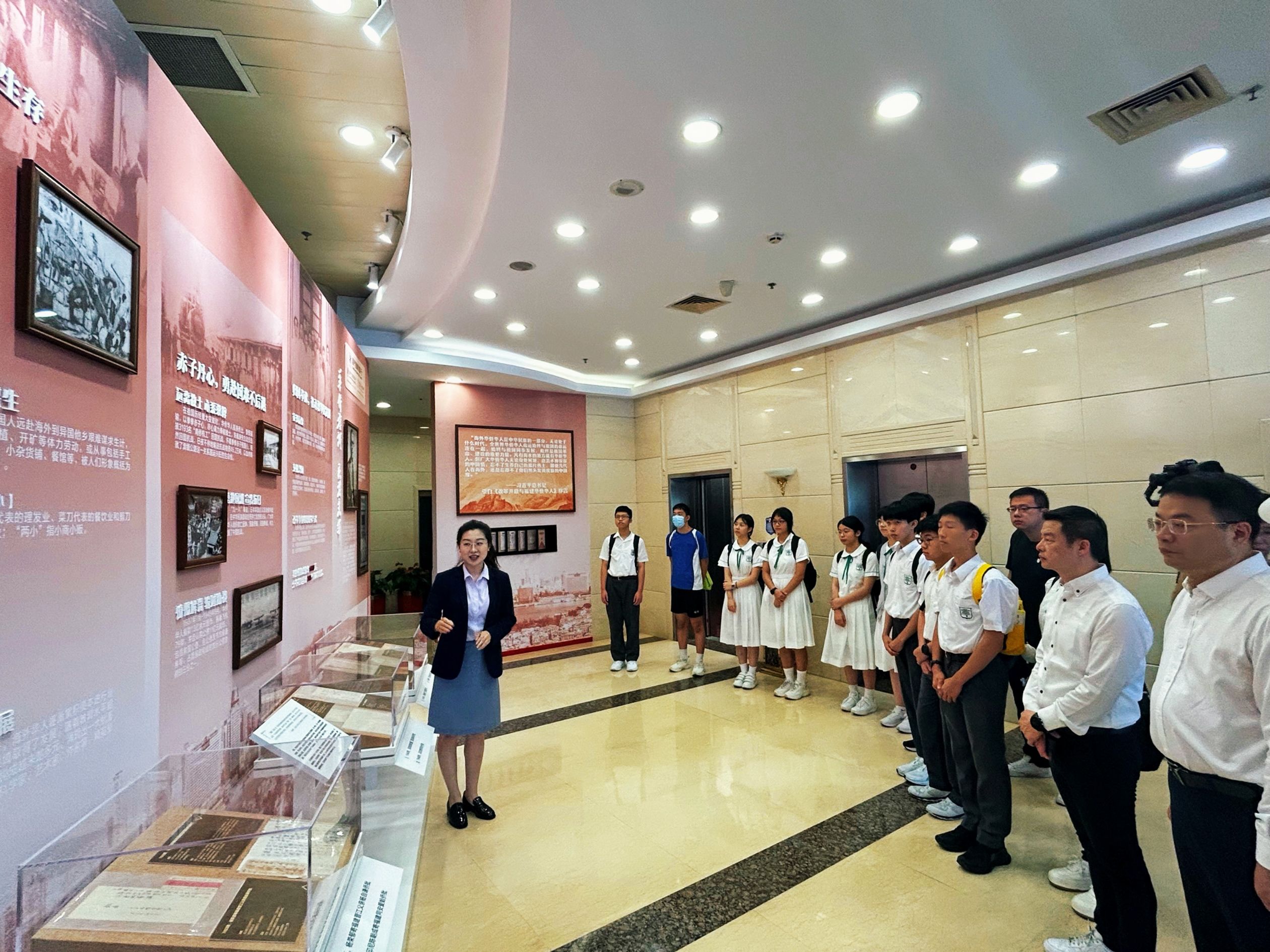 在陳嘉庚紀念館,研學營師生們在陳嘉庚紀念館館長、集友銀行董事翁榮標先生的講解和引導下,深入了解「華僑旗幟、民族光輝」陳嘉庚先生愛國愛鄉、傾資興學、服務社會、造福人類的輝煌一生,感悟嘉庚精神「忠公誠毅闖」蘊含的磅礴力量和陳嘉庚先生「以行養校」創辦集友銀行的初心。期間,翁榮標館長還與研學營師生們進行座談交流,結合在廈門期間對陳嘉庚先生事跡的學習了解談感想、展未來。研學營的學生們紛紛對陳嘉庚先生在半個多世紀的奮鬥生涯中,為民族獨立、人民解放、祖國富強、男女平等等方面作出的偉大貢獻及其留下寶貴的精神財富表達了炙熱的欽佩之情,翁榮標館長勉勵培僑學子們學有所得、行有所獲、學有所悟,在「融通中西」中深入弘揚傳承嘉庚精神,攜手為愛國愛港愛鄉事業發展不斷貢獻力量。