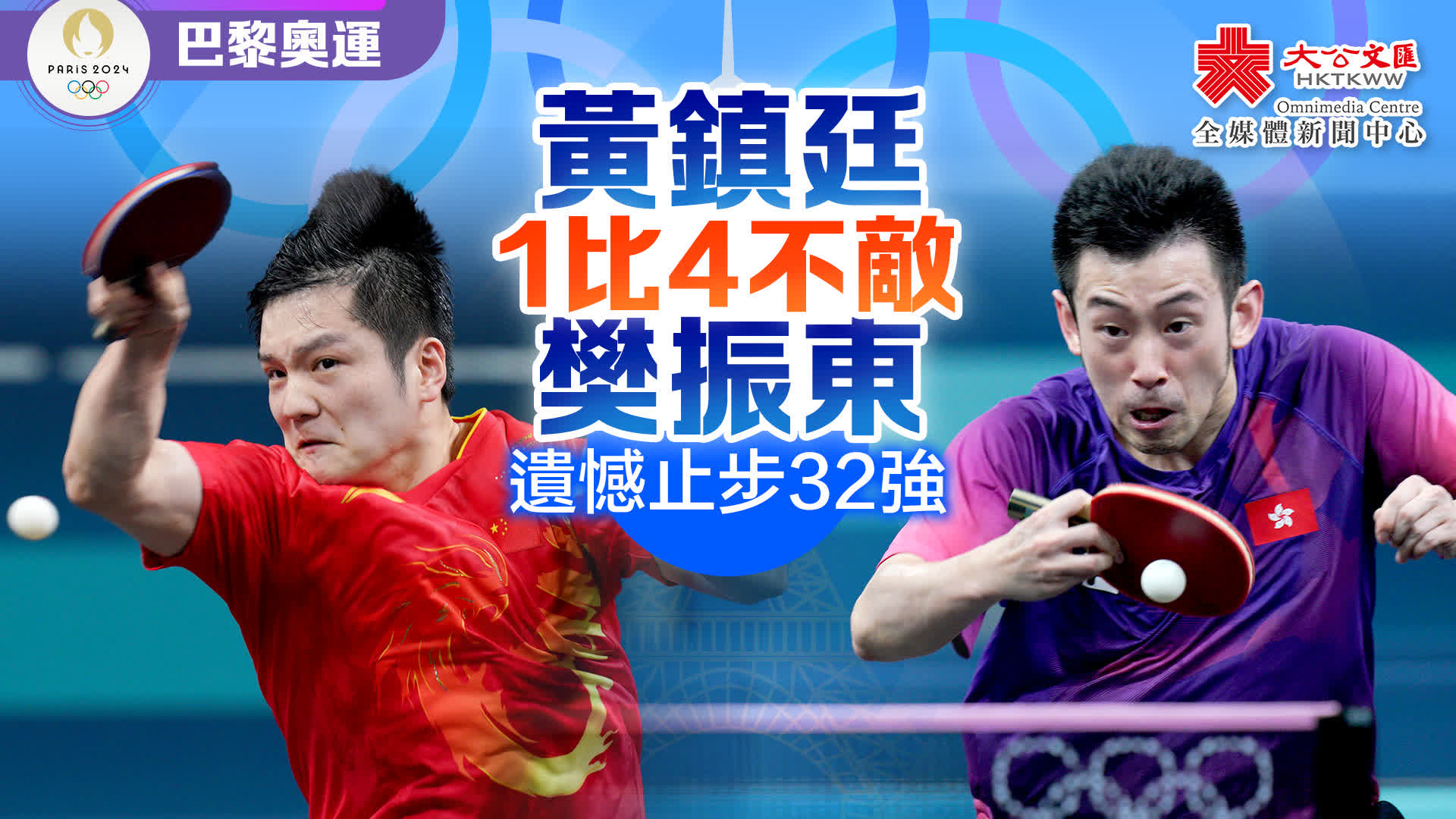 大公文匯全媒體報道,在今日(31日)進行的乒乓球男單32強比賽中,中國香港隊乒乓球「一哥」黃鎮廷,挑戰國家隊選手樊振東,最終黃鎮廷1-4落敗止步32強。