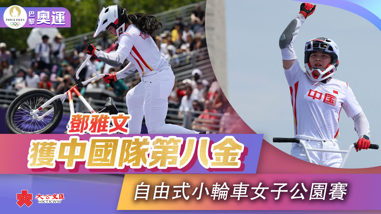 大公文匯網報道,7月31日,在巴黎奧運會自由式小輪車女子公園賽決賽中,中國選手鄧雅文奪得金牌。這是中國代表團在本屆奧運會獲得的第8枚金牌。