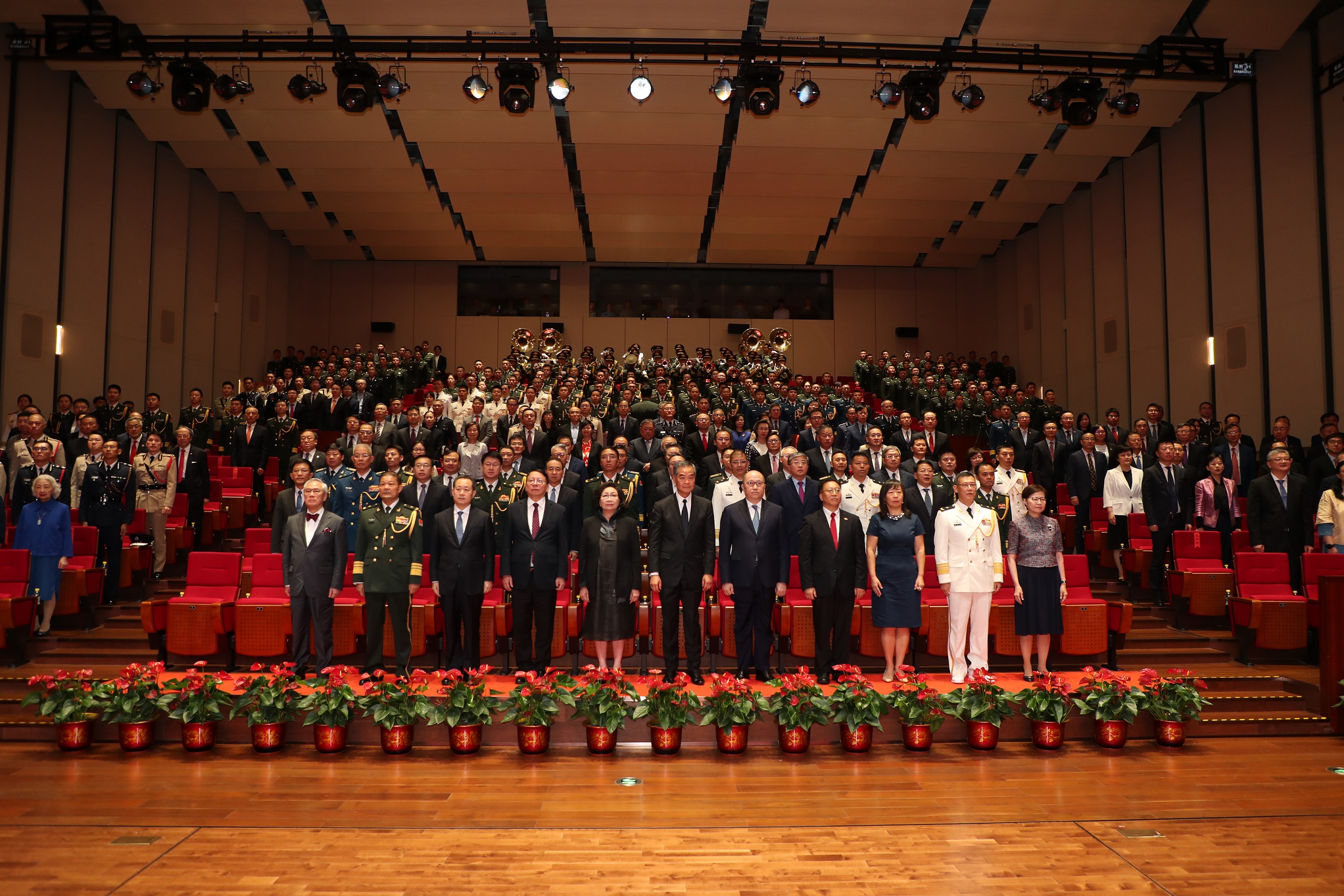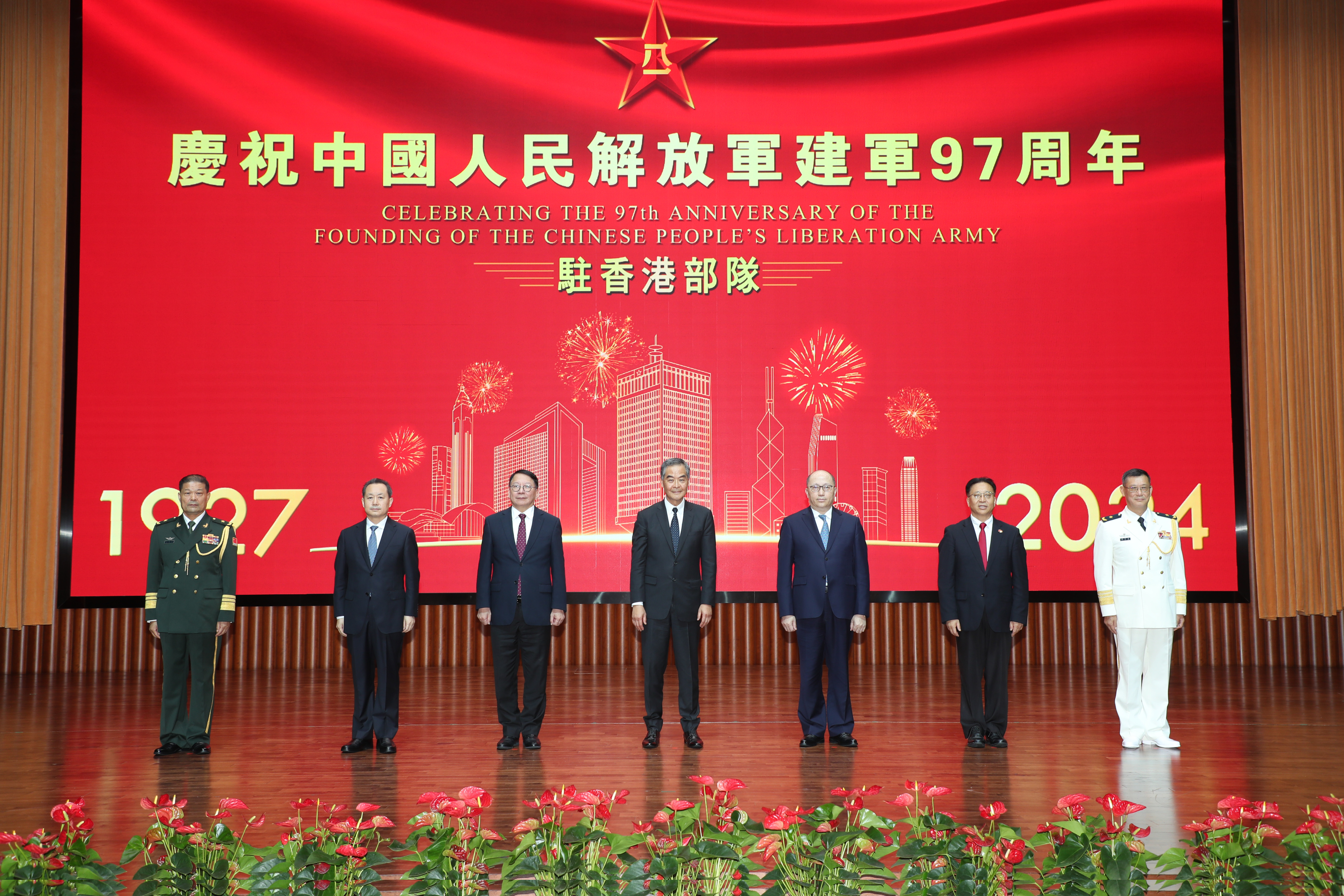 全國政協副主席梁振英、香港特別行政區署理行政長官陳國基、中央政府駐港聯絡辦主任鄭雁雄、中央駐港國安公署署長董經緯、外交部駐港公署特派員崔建春,駐香港部隊司令彭京堂及政治委員賴如鑫擔任主禮嘉賓。