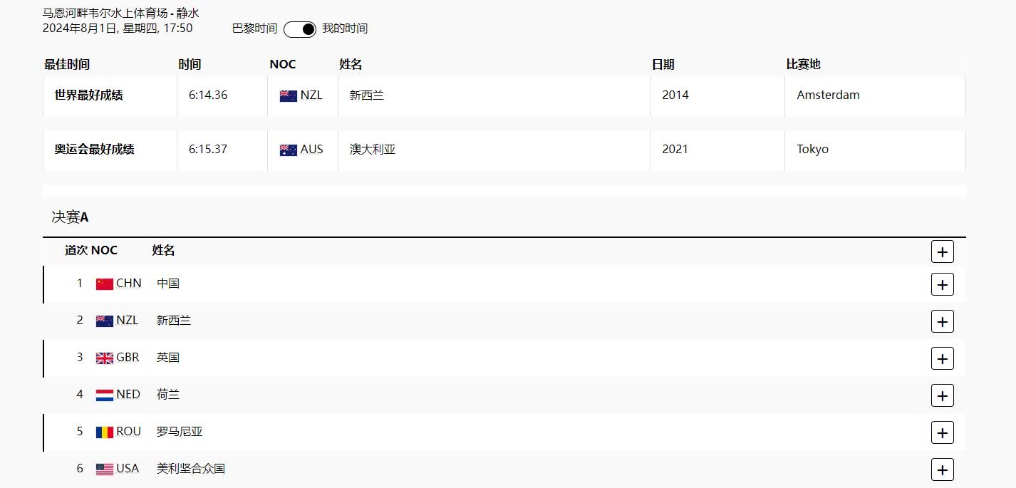 此前,中國女子賽艇四人單槳組合張書賢、劉曉鑫、王子鳳、徐星葉在復活賽一眾歐美強隊中突破重圍,以小組第二的成績晉級決賽。今天,姑娘們將對獎牌發起衝擊。