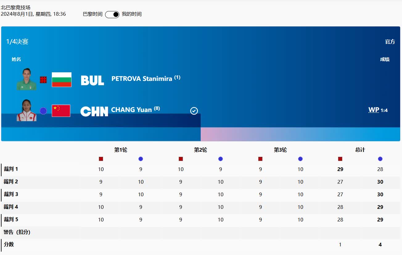 經過三輪激烈角逐,常園憑藉總比分4:1的優異表現,成功逆轉對手,挺進四強,繼續向獎牌發起衝擊。