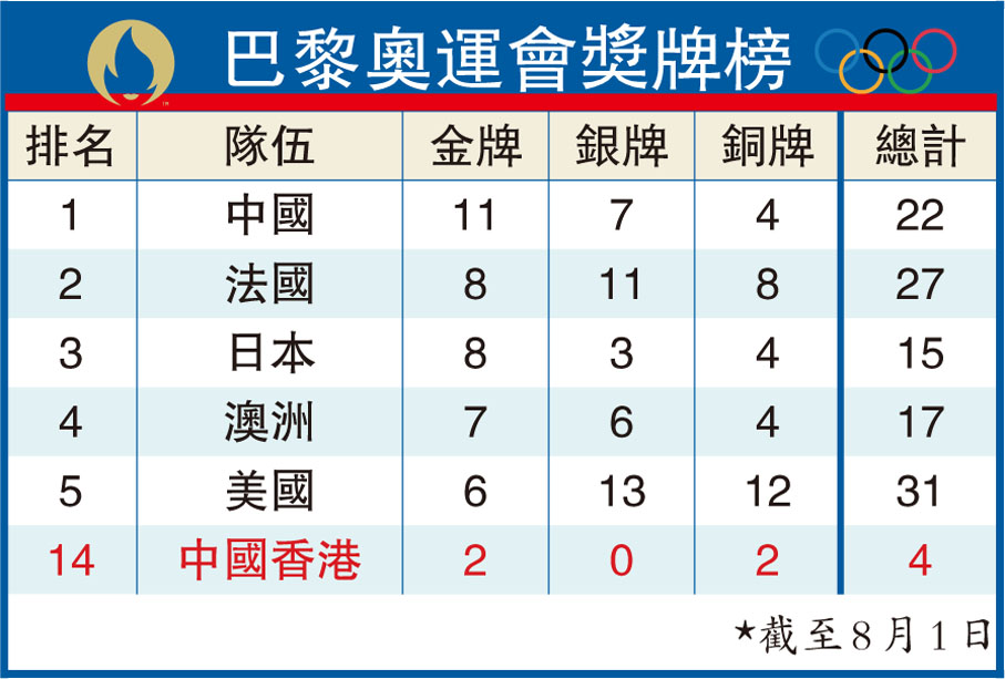 (來源:香港文匯報A05:2024巴黎奧運 2024/08/02)