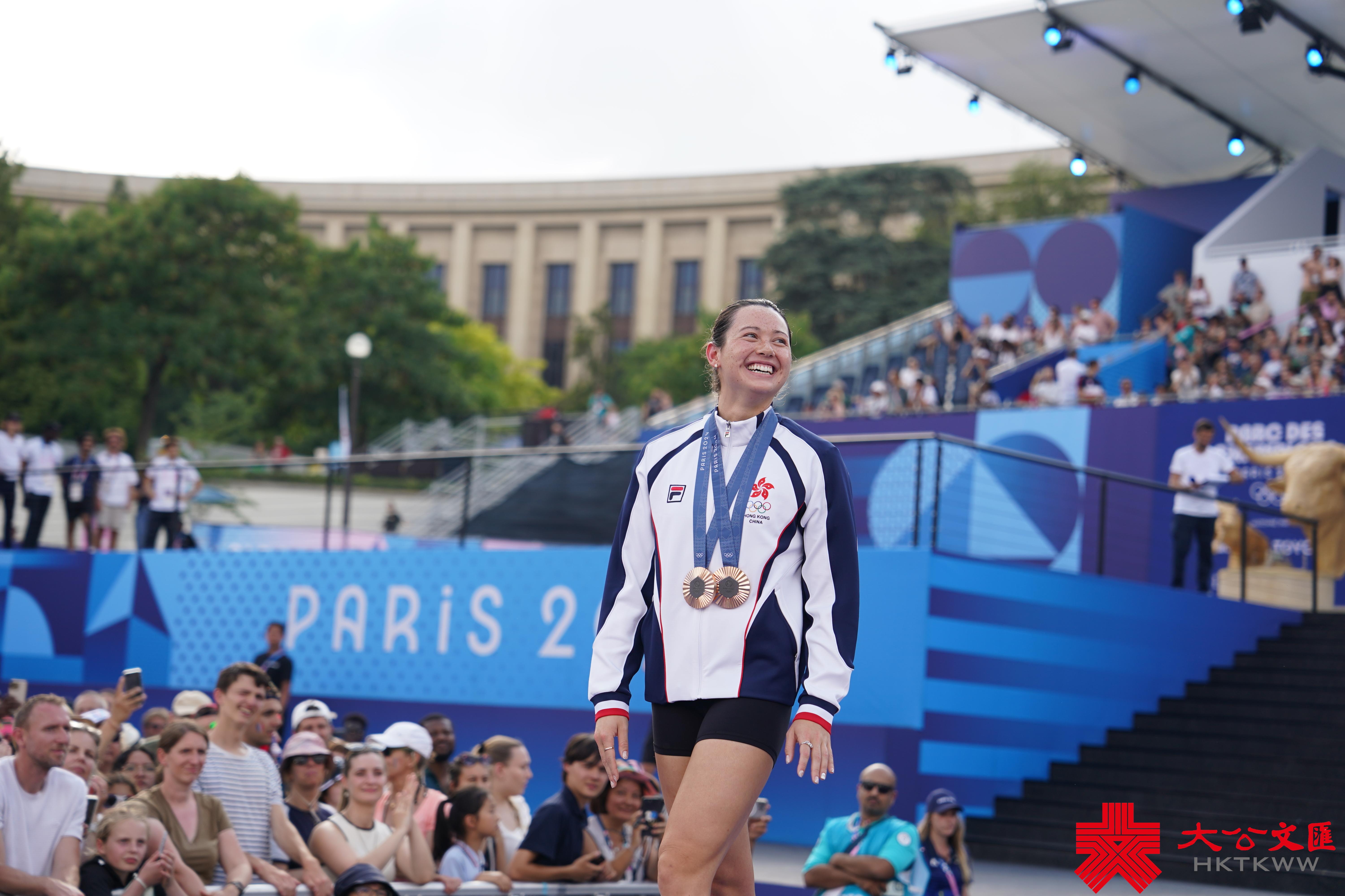「冠軍公園」巡遊是巴黎奧運特設的慶祝活動,在指定日子邀請獎牌運動員與觀眾近距離接觸,繼女子重劍個人賽金牌得主江旻憓後,巴黎奧運獲得雙銅的何詩蓓亦出席活動,臉上掛着一貫燦爛笑容的她踏上「T台」後不斷向觀眾揮手致意,更是展現出她「寵粉」的一面,對於香港「粉絲」的合照簽名要求一一答應,留在台上足足20分鐘才離開。