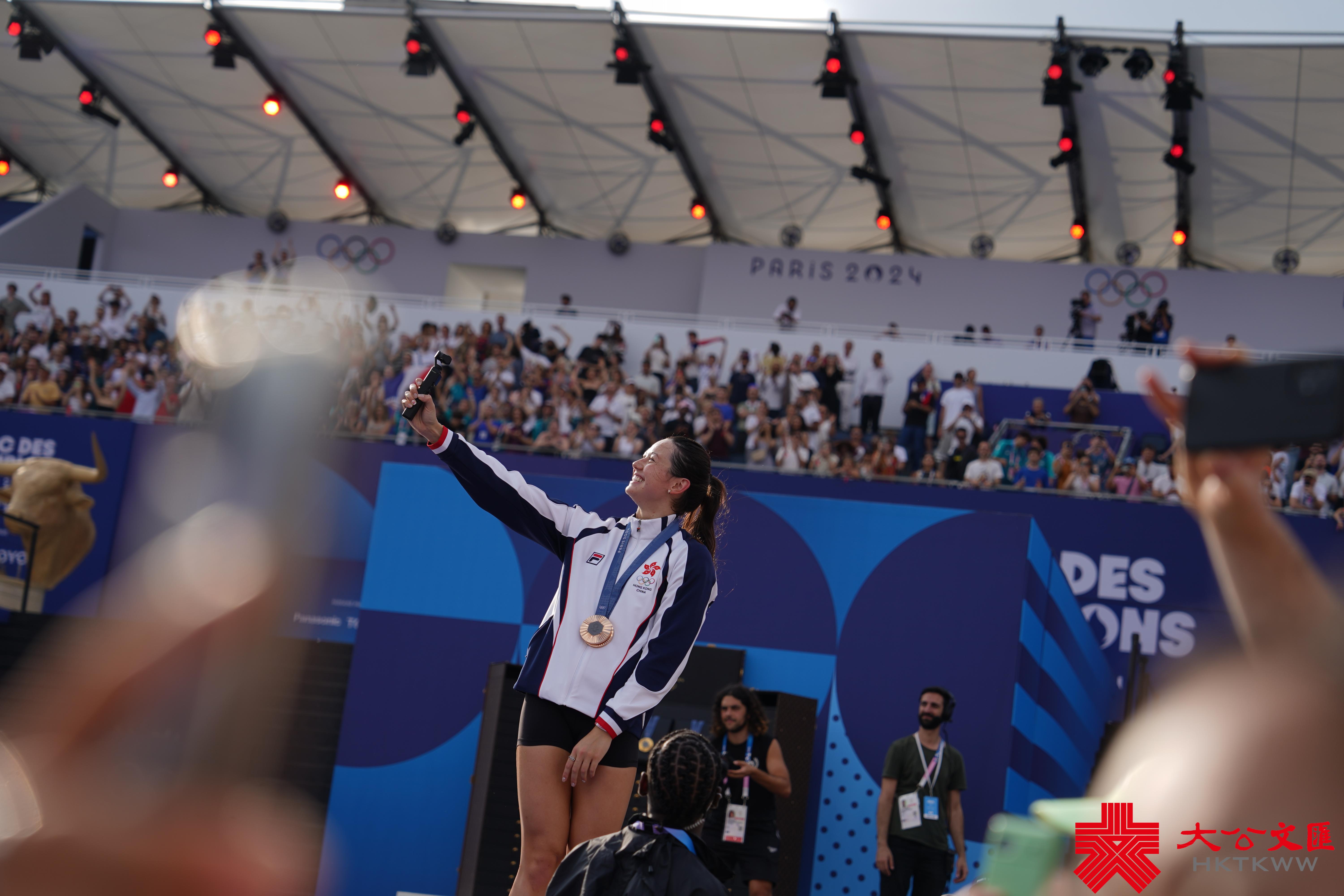 (大公文匯全媒體特派記者 葉詩敏)於巴黎奧運女子100米及200米自由泳各得一銅的何詩蓓到「冠軍公園」出席慶典,全程笑容滿面的她十分享受這個今屆奧運特有的派對,對觀眾的合照和簽名要求來者不拒。何詩蓓希望在香港也有類似活動,並透露會參加周六的女子4×100米混合泳接力賽。