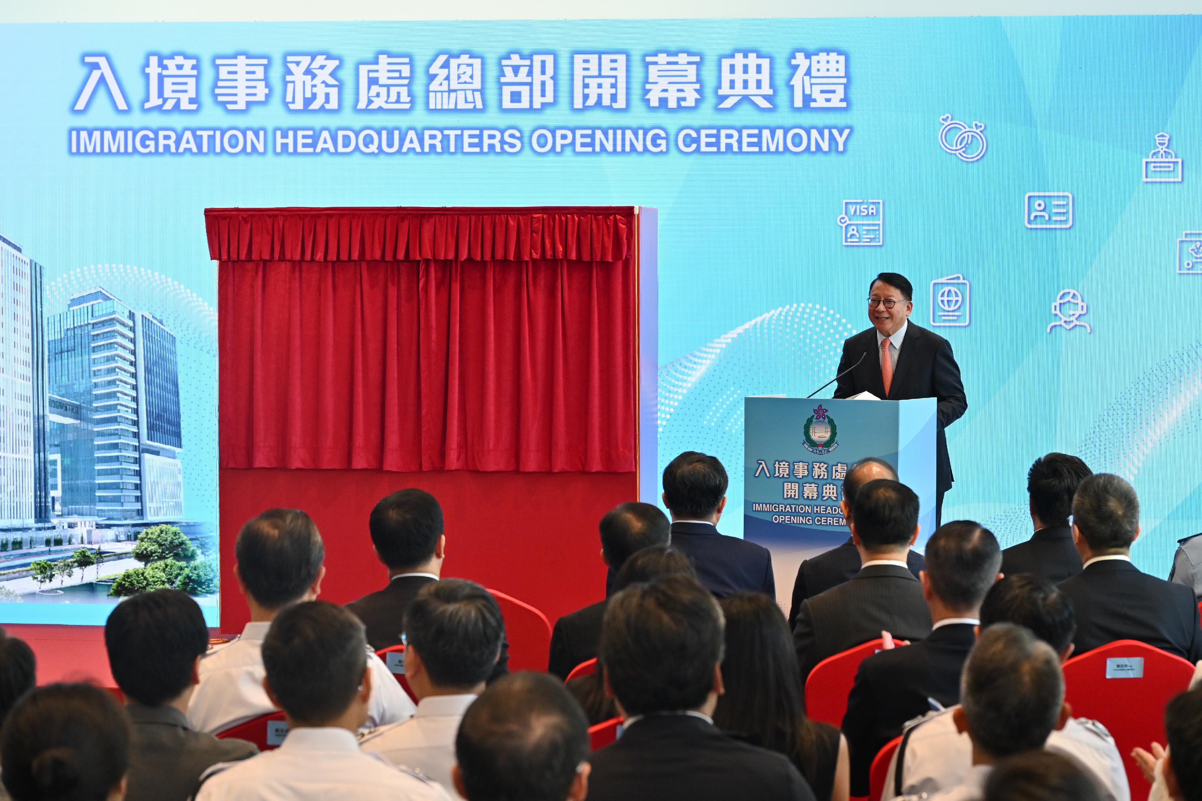大公文匯全媒體報道,政務司司長陳國基今日(3日)出席入境處將軍澳新總部的開幕典禮並致辭,他表示,入境處要繼續維護國安屏障,積極利用科技創新改善工作效率,引進更多優秀人才並且加強與內地的聯繫。