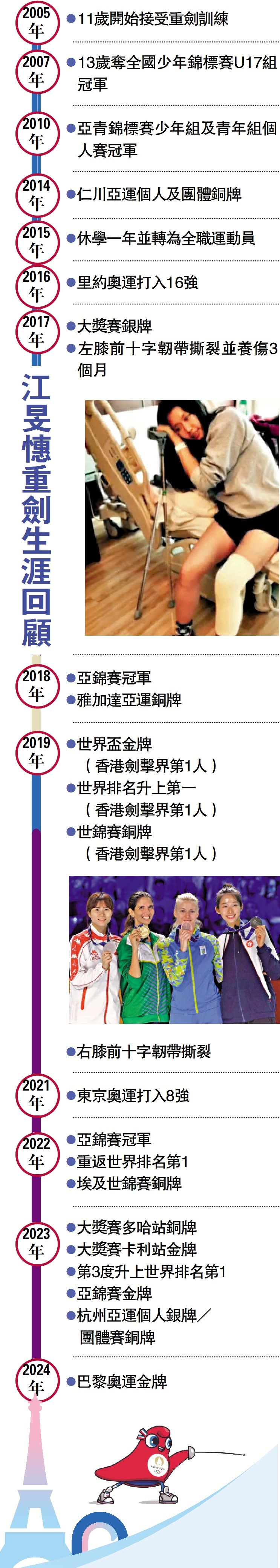 2024年,江旻憓成為巴黎奧運女子重劍個人賽金牌得主,為中國香港代表隊贏得今屆奧運首枚金牌。