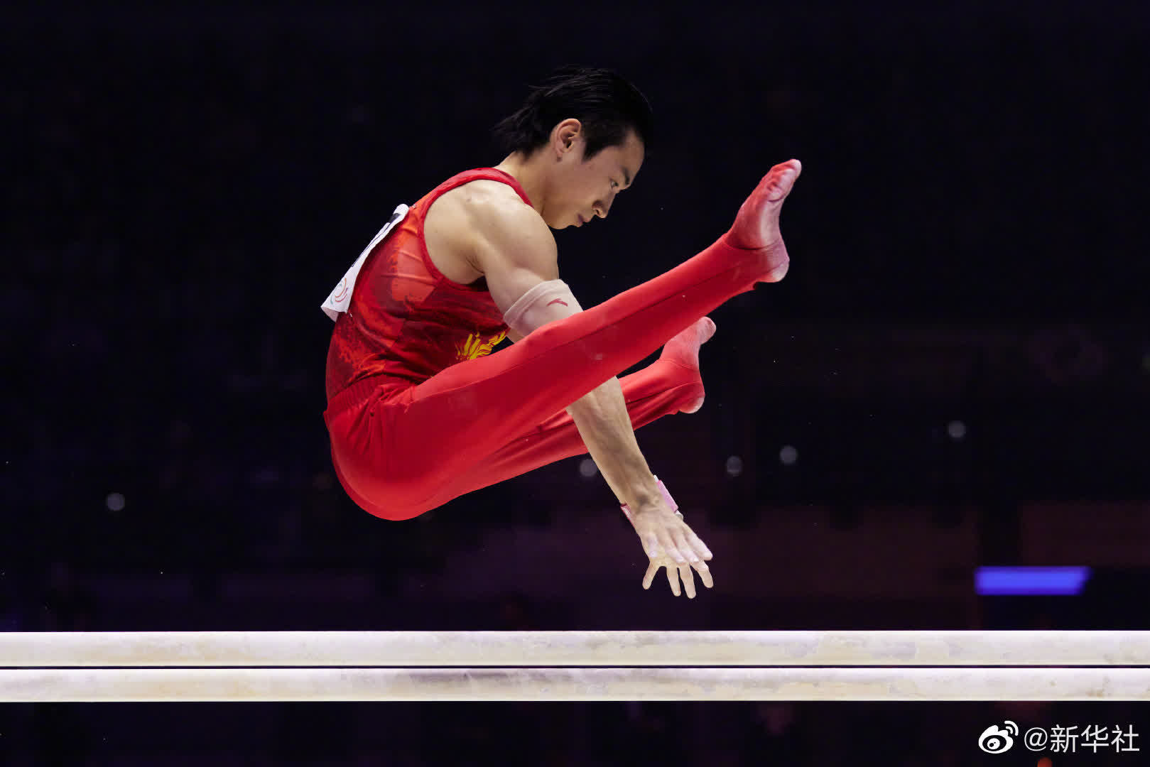 5日的貝爾西競技場男子雙杠賽場上,帶傷出戰的中國隊名將鄒敬園成功頂住烏克蘭、日本選手的衝擊,實現了他的衛冕目標。