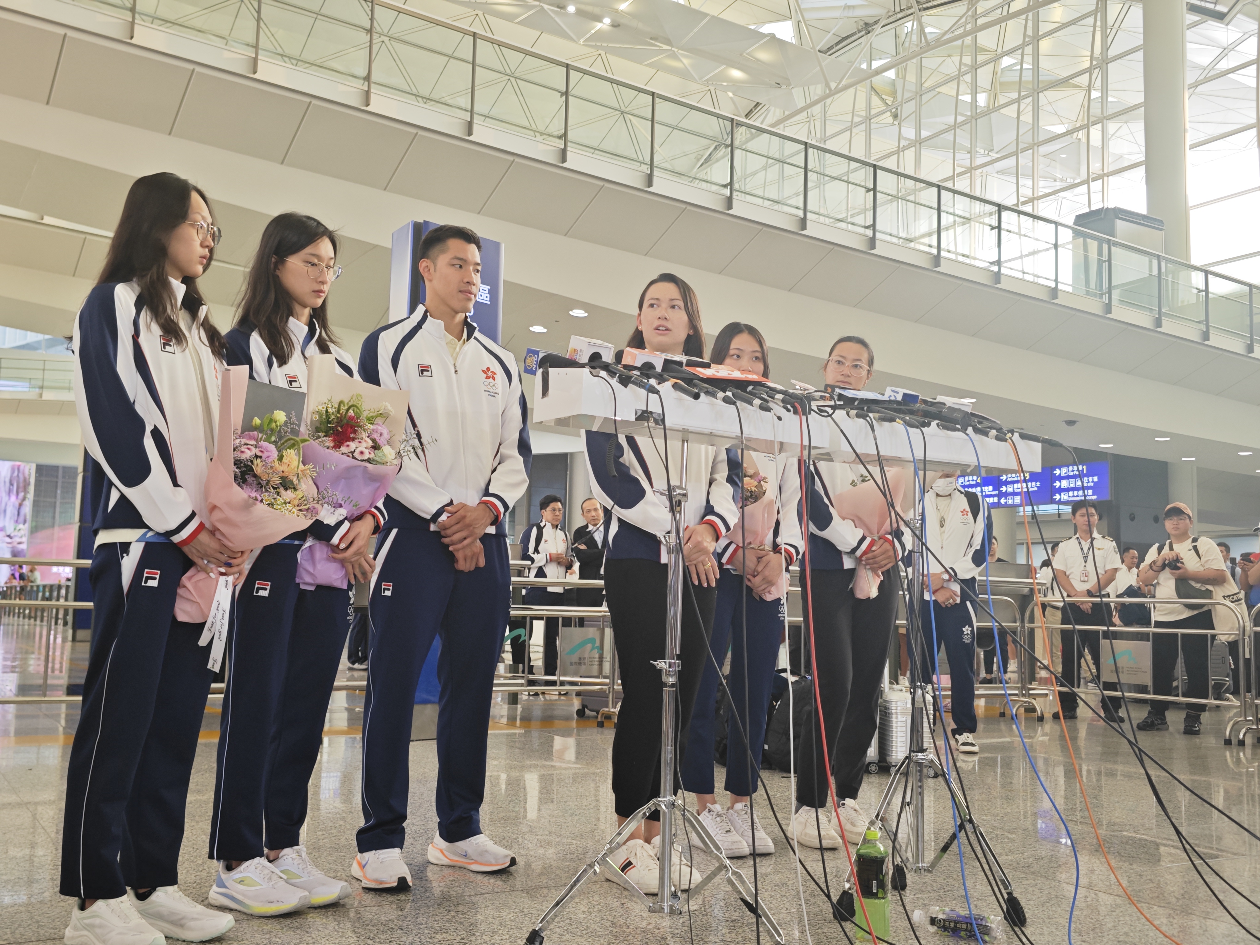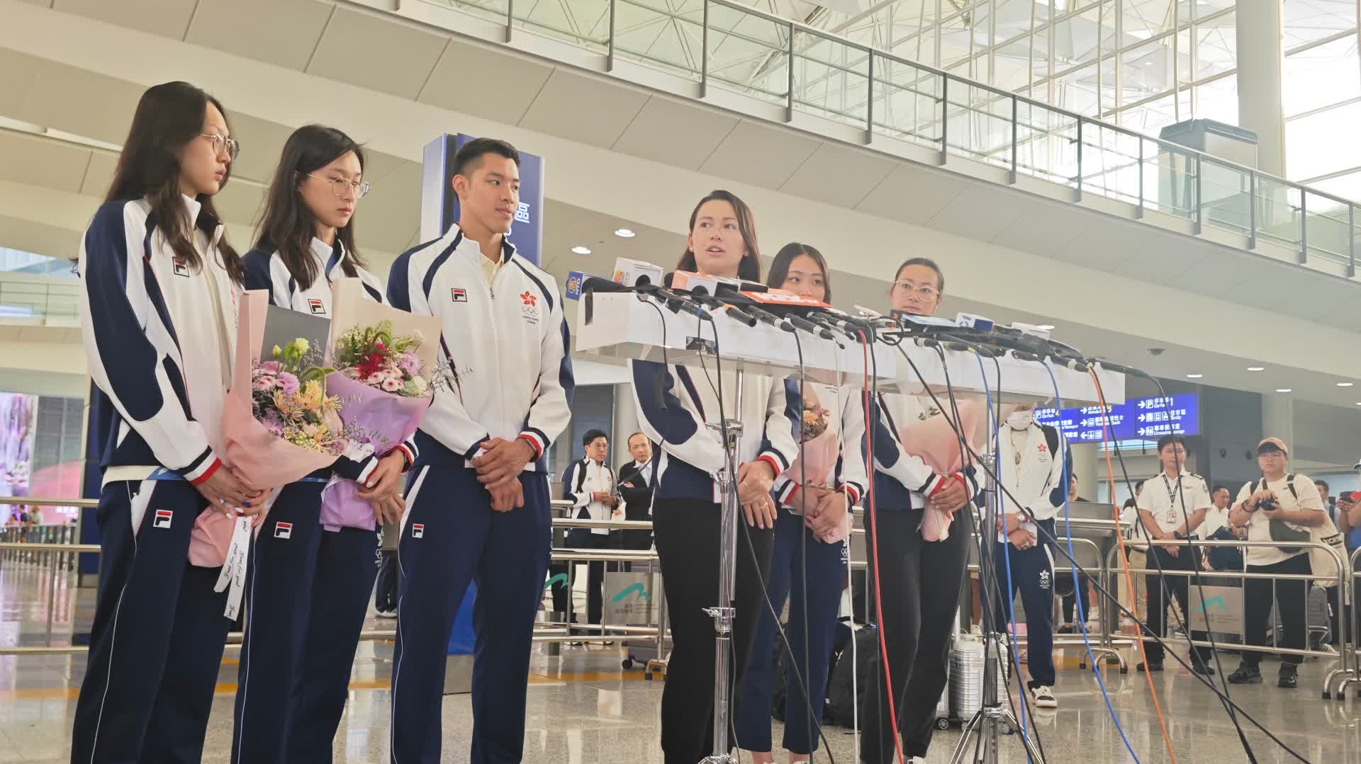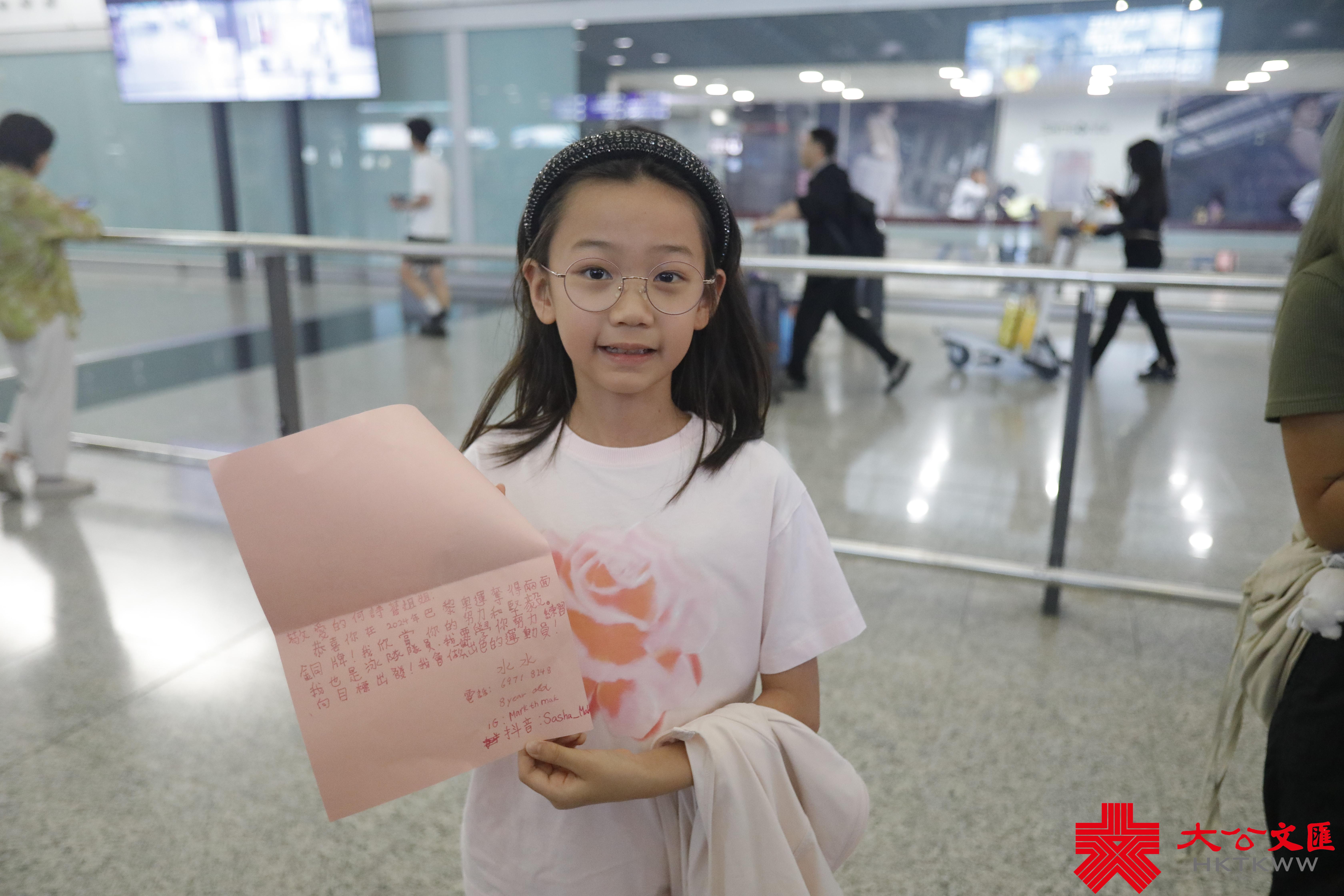 (大公文匯全媒體 記者 王俊傑)隨着巴黎奧運進入尾聲,中國香港代表團成員陸續回港。在奧運女子100米和200米自由泳兩個項目取得銅牌的「香港女飛魚」何詩蓓今早(6日)聯同泳隊部分成員,乘坐航班CX260凱旋,現場有小朋友特地從屯門前來一號客運大樓,帶同心意卡「追星」。更多現場消息,留意大公文匯全媒體不斷更新。