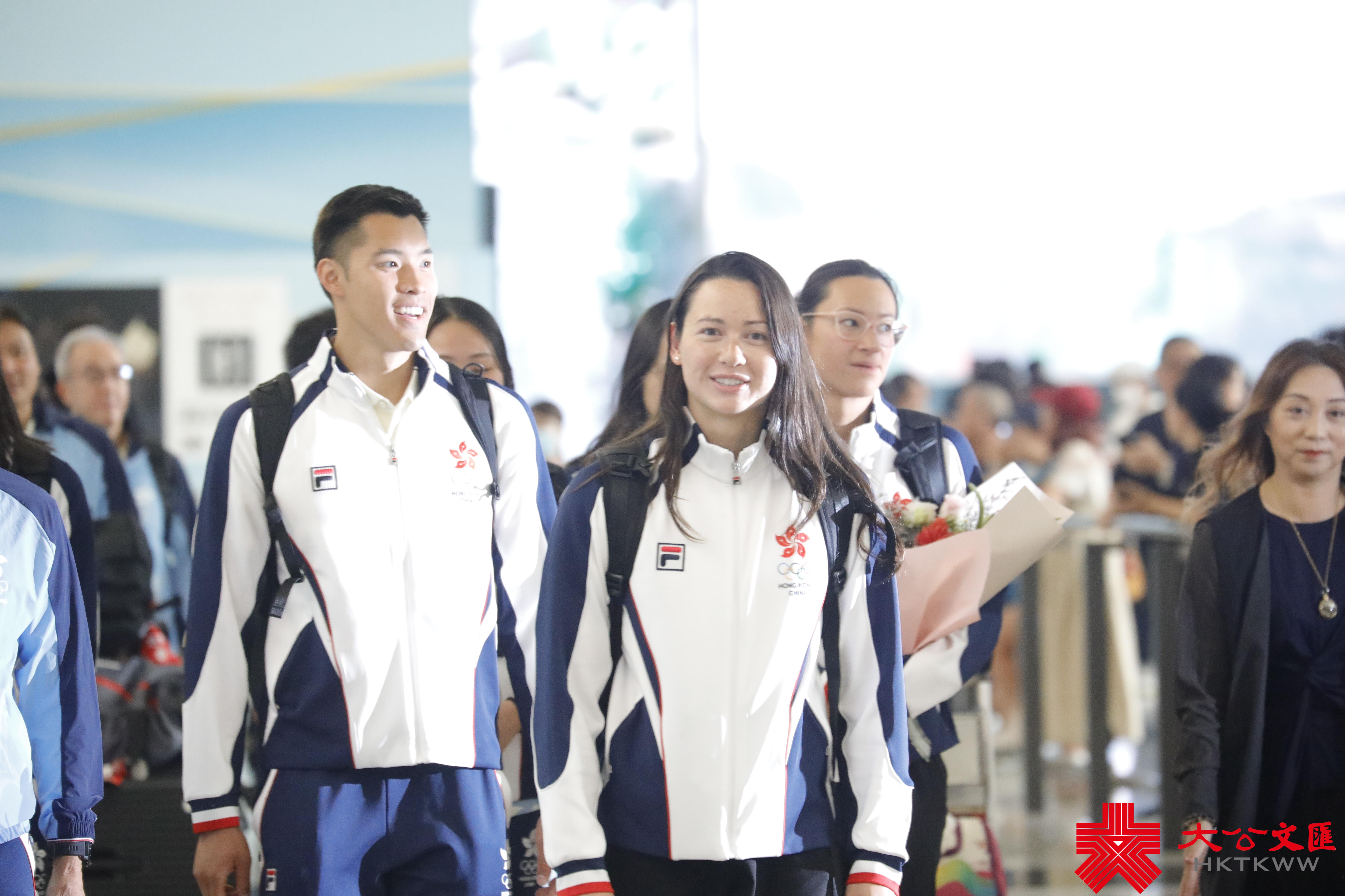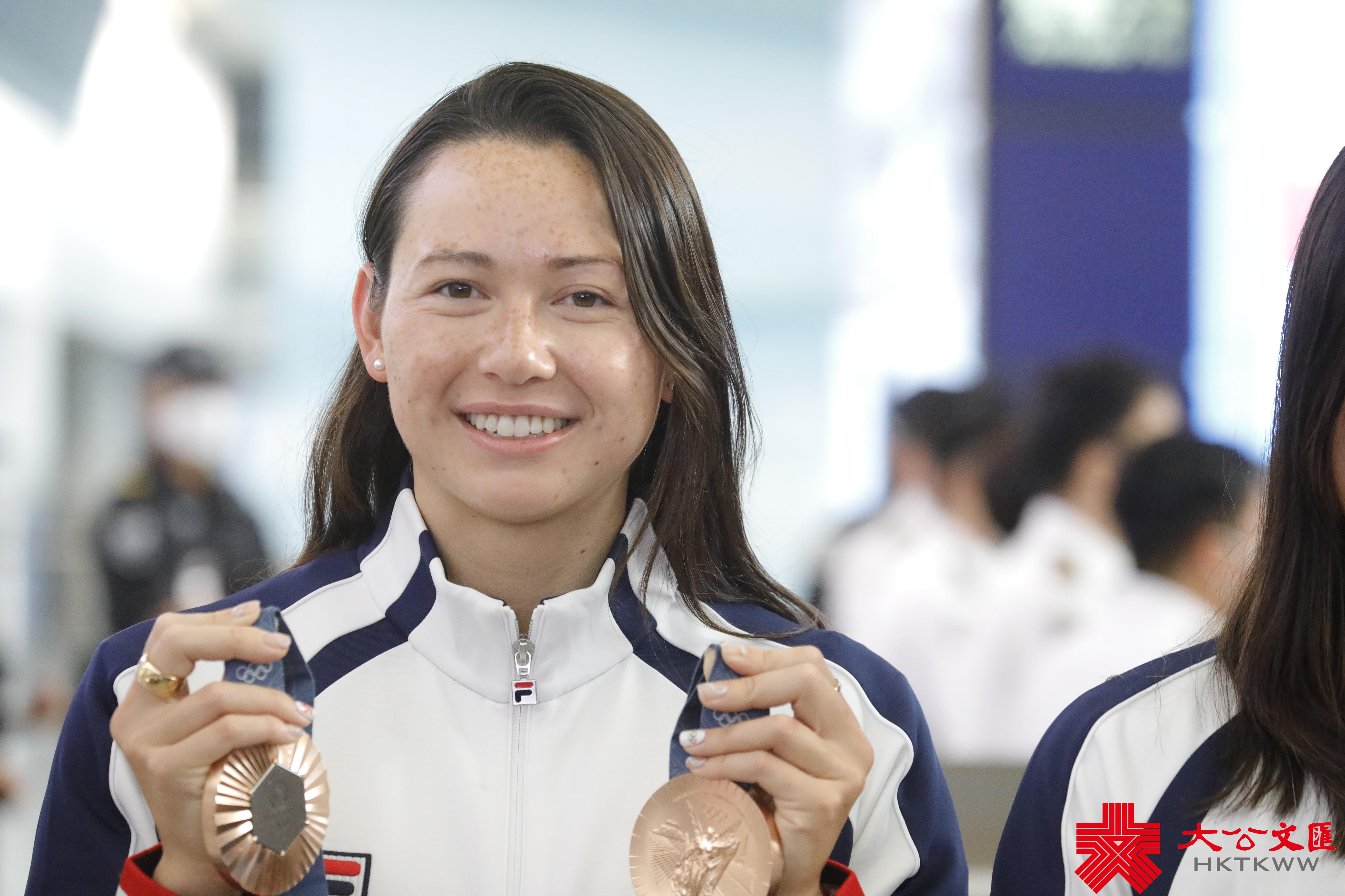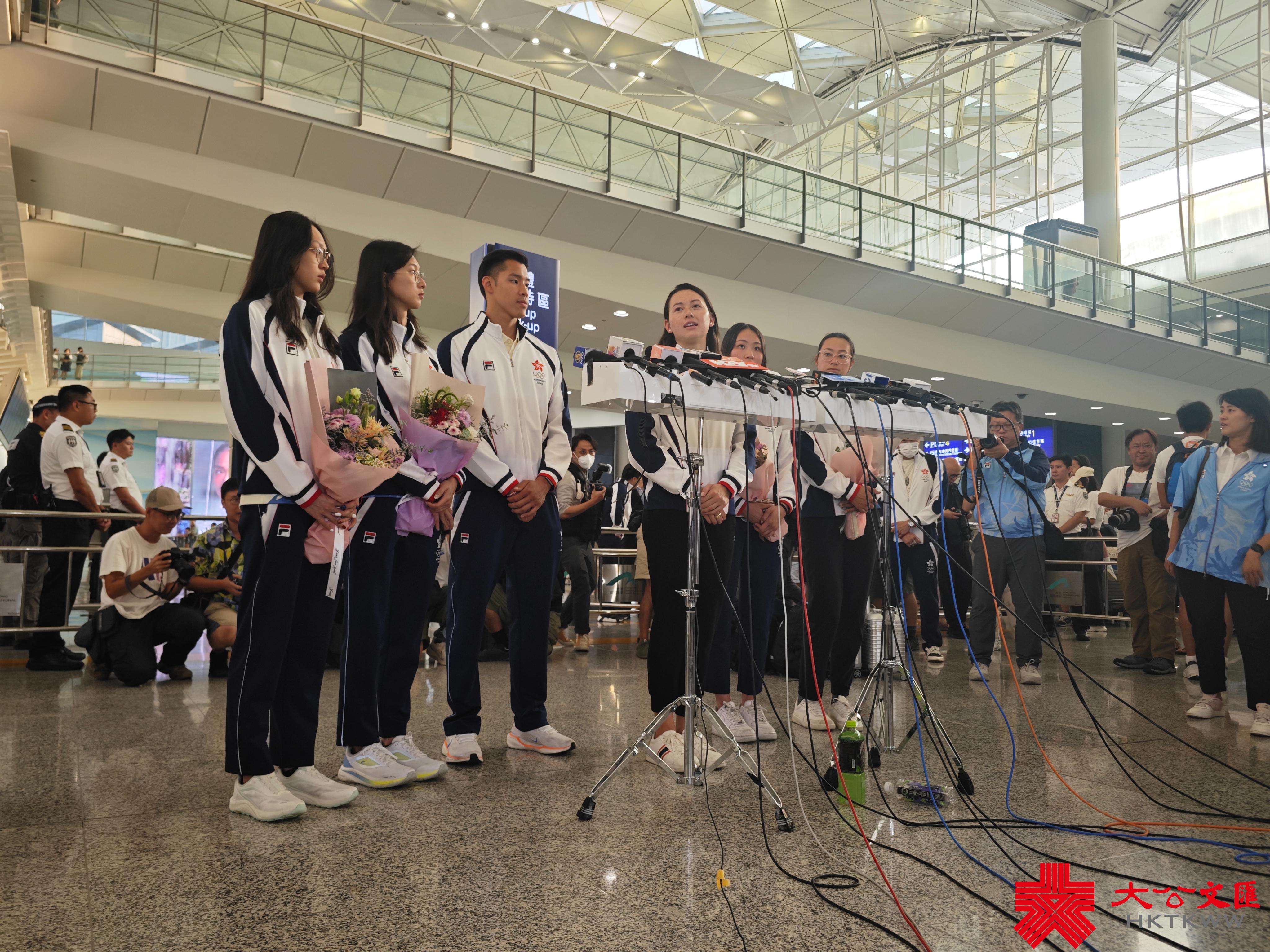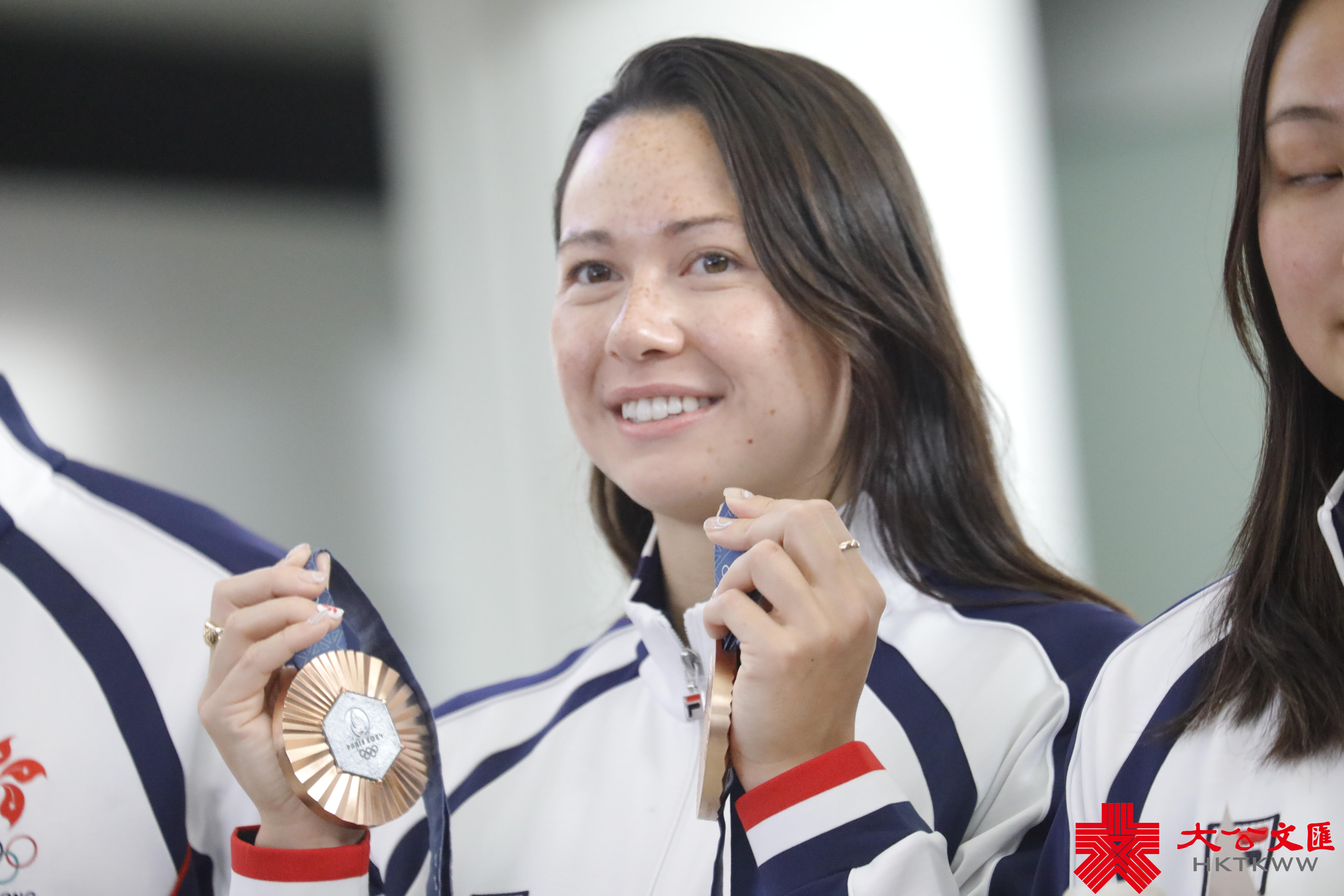 大公文匯全媒體報道,今屆巴黎奧運2銅得主何詩蓓與香港游泳隊5名女隊員歐鎧淳、張心悅、簡綽桐、譚凱琳及鄭莉梅,加上唯一男泳手何甄陶,乘坐航班CX260凱旋,今早(6日)6時許抵達香港。何詩蓓見記者時表示,兩屆奧運拿四面獎牌是運動員光榮。