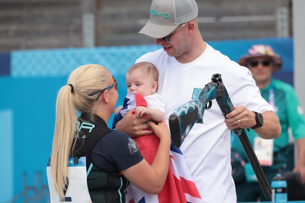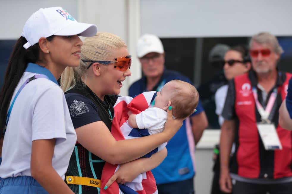 據新華社報道,巴黎奧運會的射擊賽場4日上演了溫馨的一幕。在奪得女子飛碟雙向銀牌之後,英國選手安伯·拉特抱起了她三個月大的兒子,和丈夫一起慶祝這塊來之不易的獎牌。