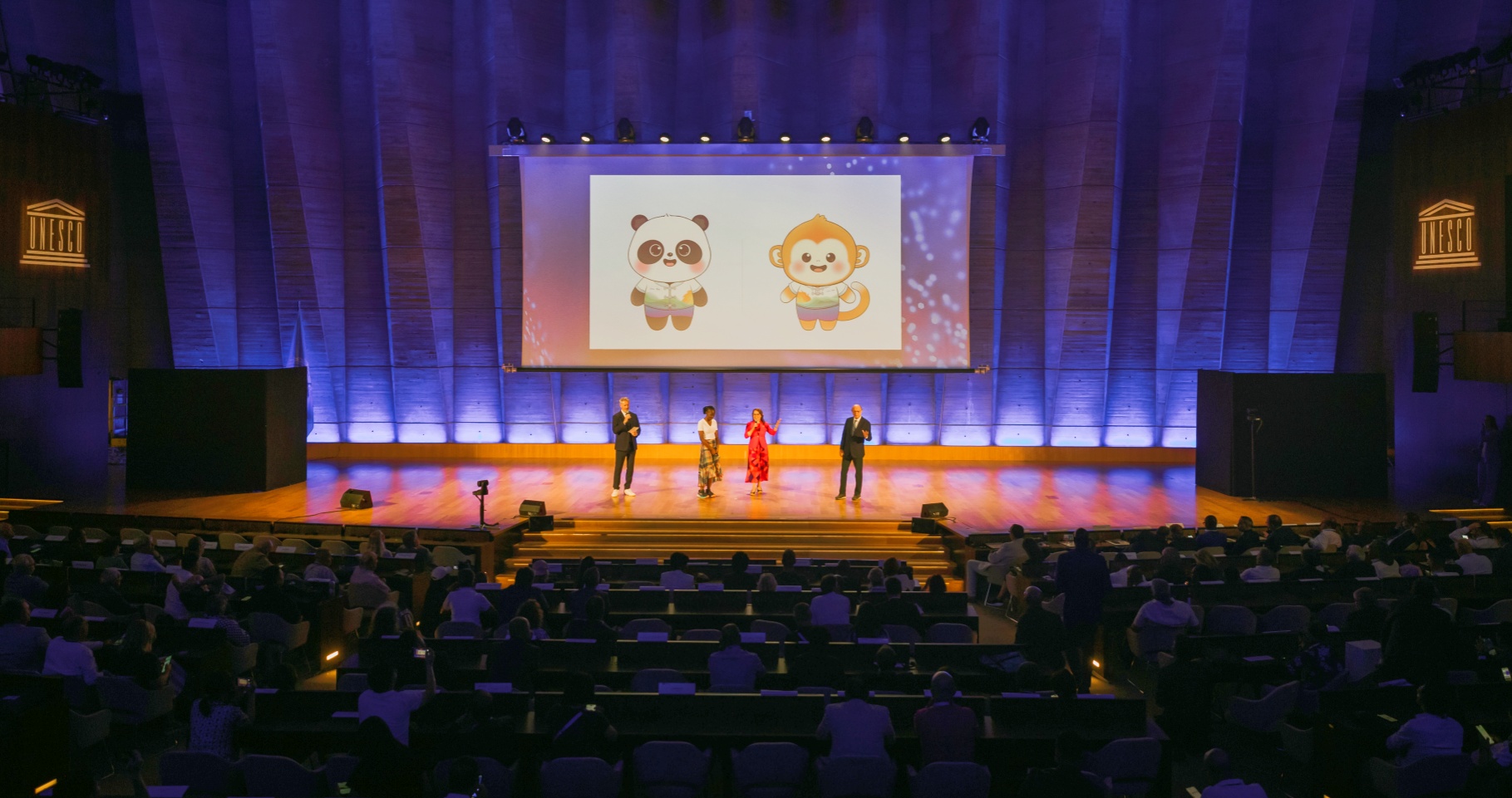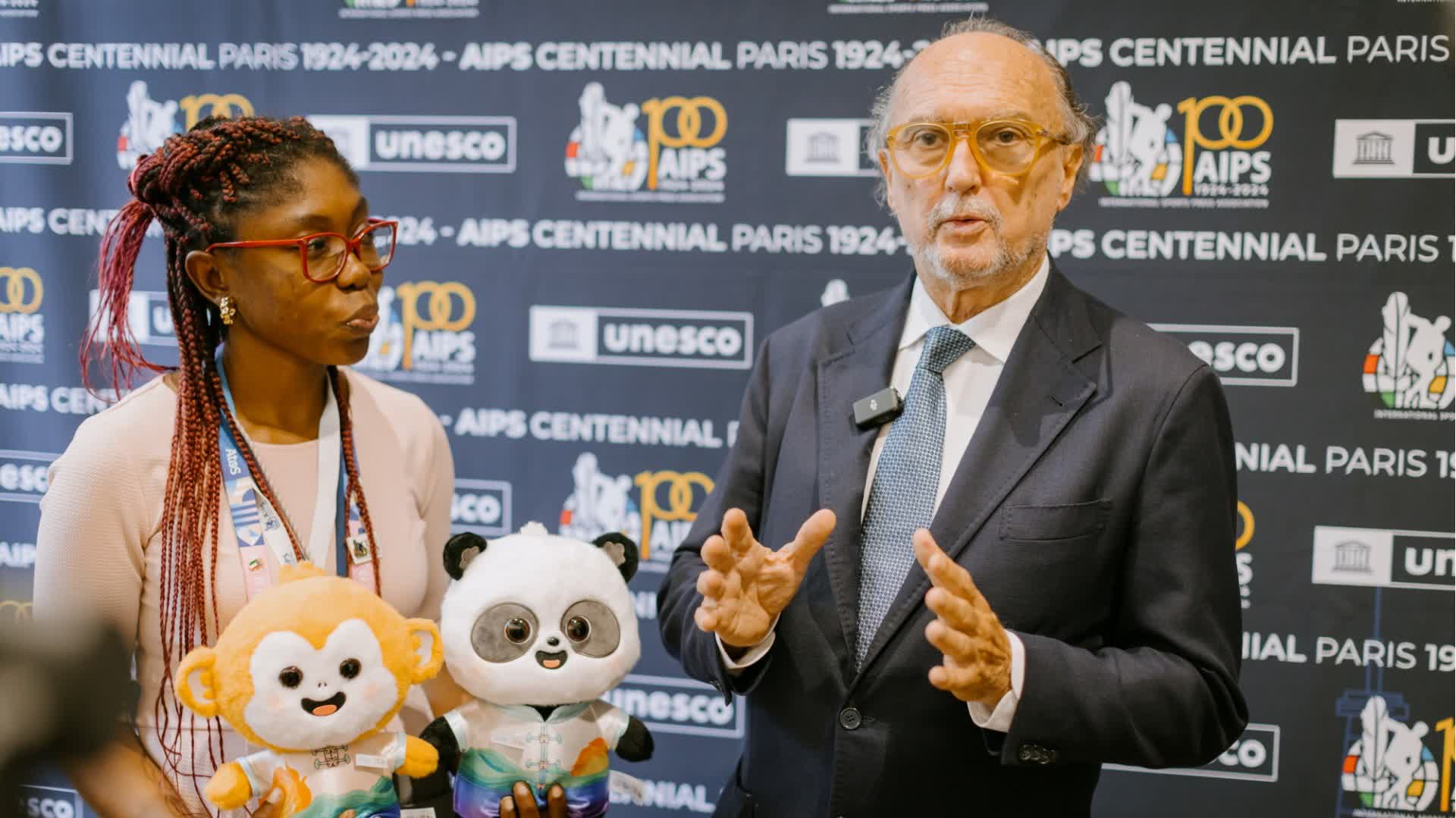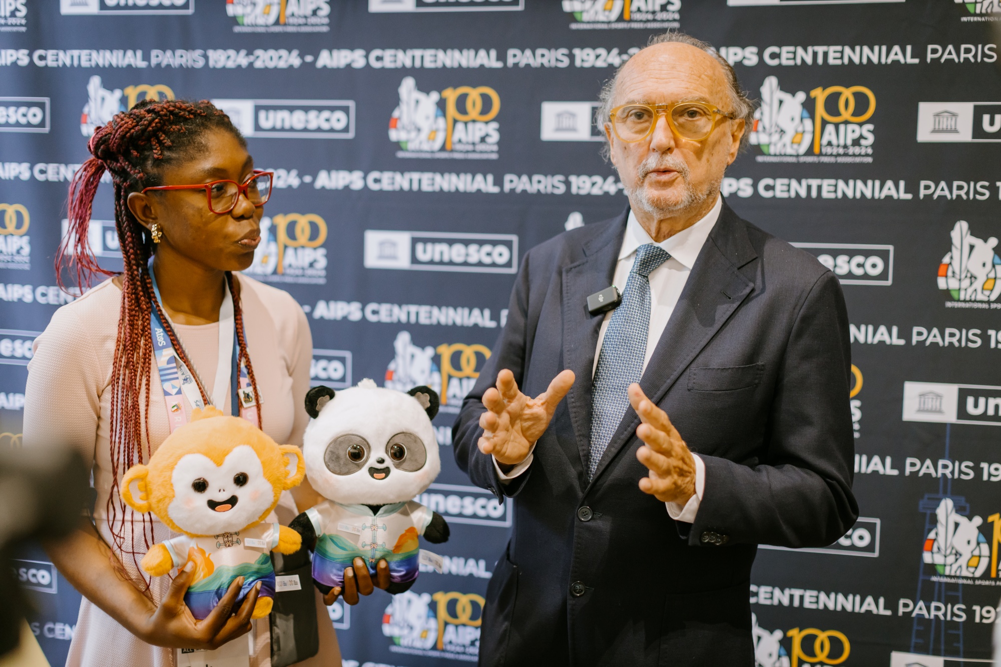 (大公文匯全媒體 記者 李兵)北京時間8月6日下午,正值巴黎奧運會舉辦期間,成都世運會吉祥物「蜀寶」「錦仔」亮相國際體育記者協會(AIPS)成立100周年巴黎紀念活動。「大熊貓是最能代表成都的動物,而川金絲猴則充滿了無限的生機與活力。」AIPS主席吉亞尼·梅羅說,成都世運會吉祥物旨在呼籲大家關愛珍稀動物、關注生物多樣性保護,與世運會注重環保與可持續理念相契合。