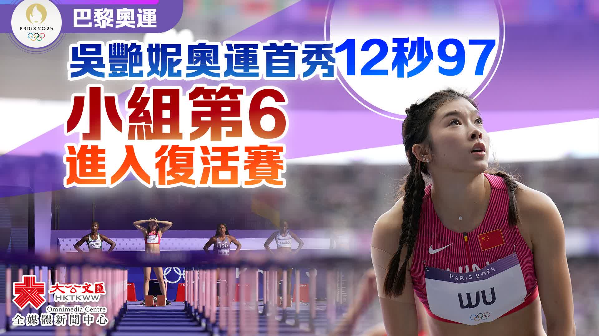 關鍵詞:巴黎奧運田徑100米跨欄吳艷妮林雨薇
