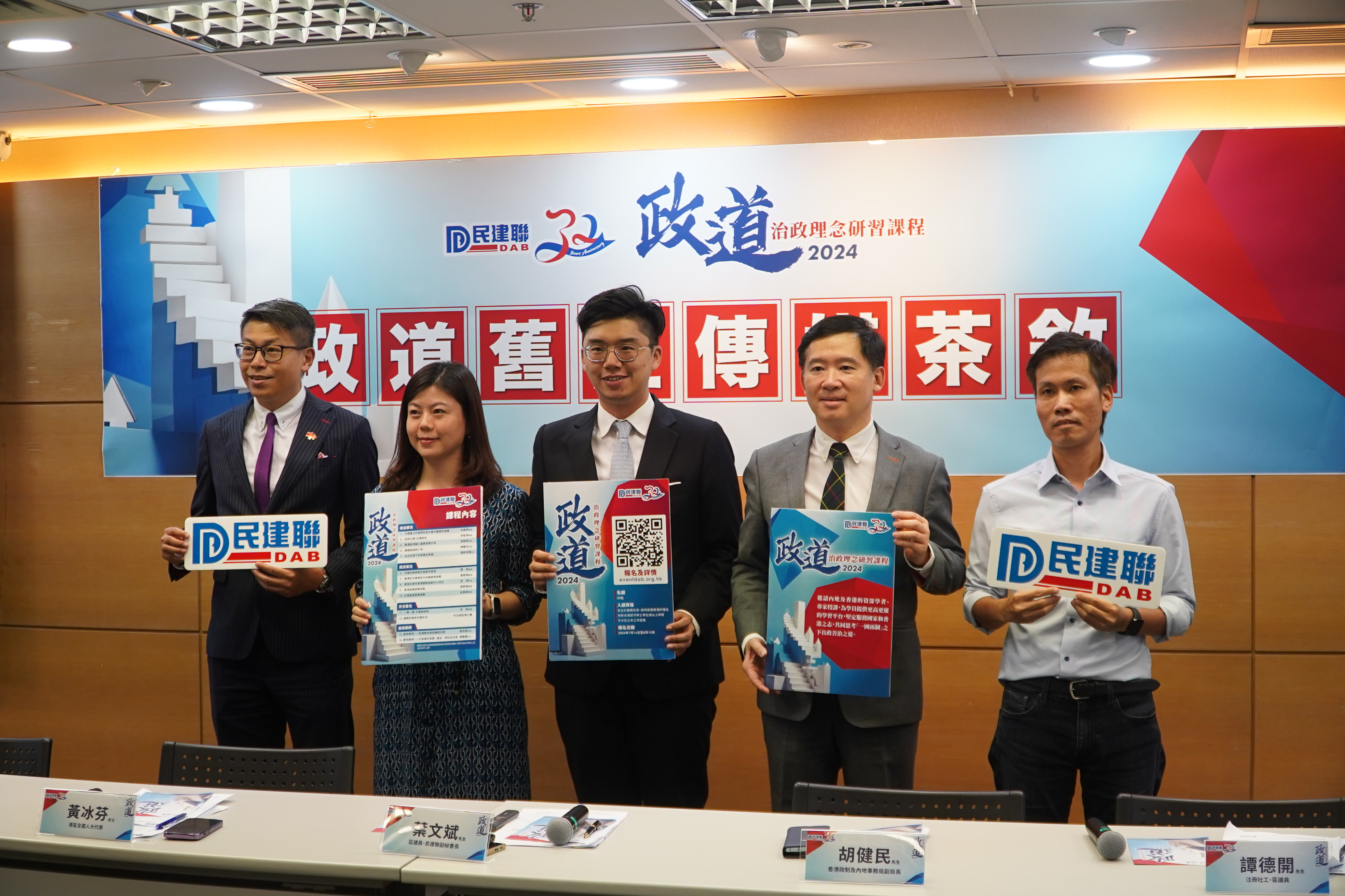 (大公文匯全媒體 記者 李九歌)時隔三年,民建聯「政道2024-治政理念研習課程」7月16日再次舉辦政道課程,希望培育治政人才,名額50人,下周四(15日)截止報名。今日(7日)其舉辦「政道」舊生傳媒茶聚,政制及內地事務局副局長胡健民、港區全國人大代表黃冰芬、屯門東區議員葉文斌、香港公務員總工會主席馮傳宗、元朗區議員譚德開出席作分享。