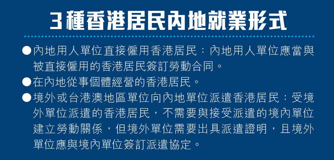 根據2018年7月28日國務院印發的《關於取消一批行政許可事項的決定》,香港居民在內地就業不再需要辦理《台港澳人員就業證》,意味港人無須再辦理相關手續,亦可如內地居民般自由選擇職業。