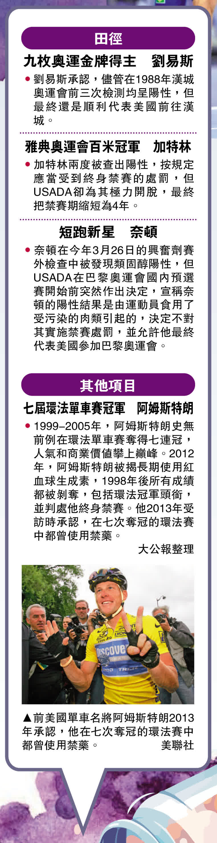 而包括USADA在內的美國機構對本國運動員的劣跡則視而不見。美國奧運田徑選手奈頓在今年3月被查出呈類固醇(群勃龍)陽性。USADA聲稱,奈頓的陽性結果是由運動員食用了受污染的肉類引起的,決定不對其實施禁賽處罰,並允許他代表美國隊參加巴黎奧運會。
