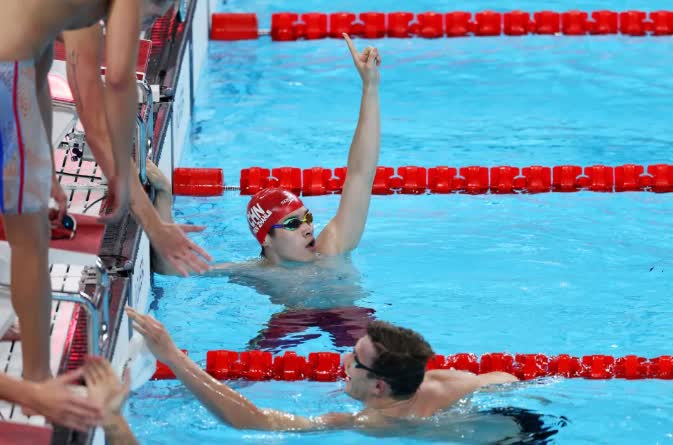 據法新社8月5日報道,儘管中國游泳隊的巴黎之行被「蒙上陰雲」,但巴黎拉德芳斯體育館的觀眾們仍用尊重和掌聲迎接他們,慶祝中國游泳隊獲得12枚獎牌的成就。