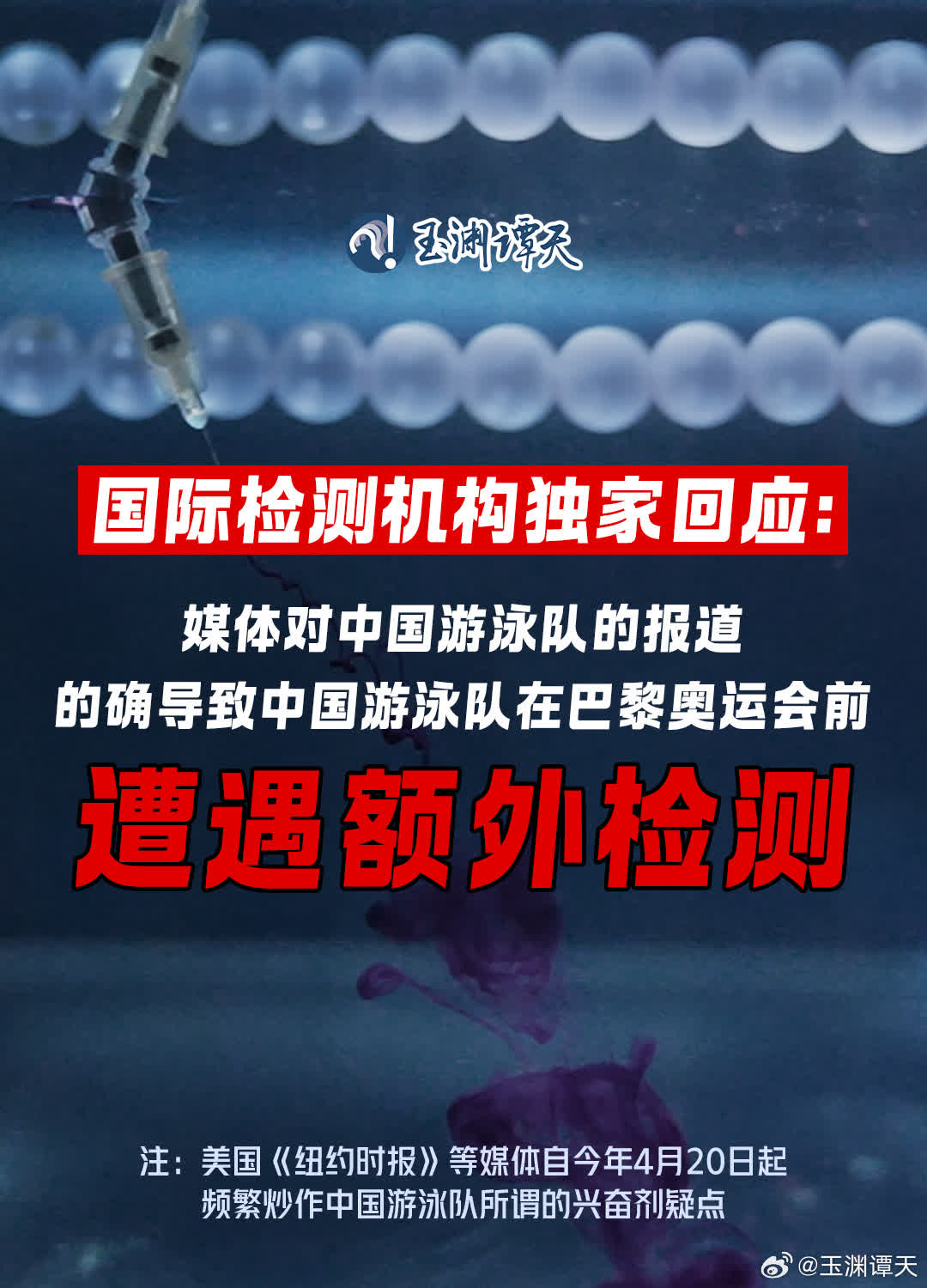 8月9日,國際檢測機構(ITA)在回覆譚主採訪請求時確認,的確是媒體對中國游泳隊的報道,導致了中國游泳隊奧運會前的額外檢測。