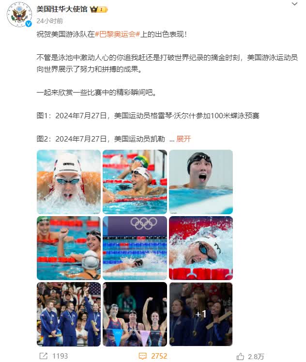 8月8日,美國駐華大使館官方微博及微信發布「祝賀美國游泳隊奧運會表現出色」相關圖文,卻被細心的網友發現他們刻意將美國泳隊賽後發紫的臉部膚色P白,不禁惹人發問:如此欲蓋彌彰難不成是做賊心虛?