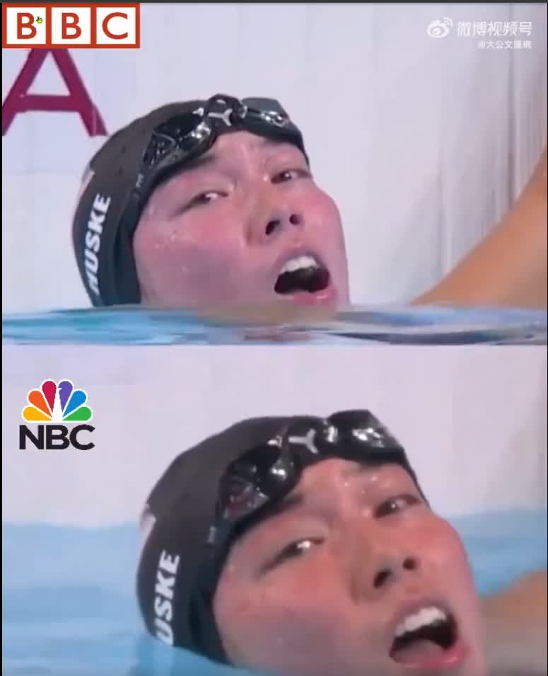 NBC不僅對視頻進行了調色處理,男子4×100混合泳接力決賽中國隊逆轉取勝後,美國賽事解說員當場「破防」,在明知中國隊在本屆奧運會經歷高強度、高頻次的藥檢情況下,直播中陰陽怪氣潘展樂不可能游出46秒以內的成績,暗諷中國隊「勝之不武」。
