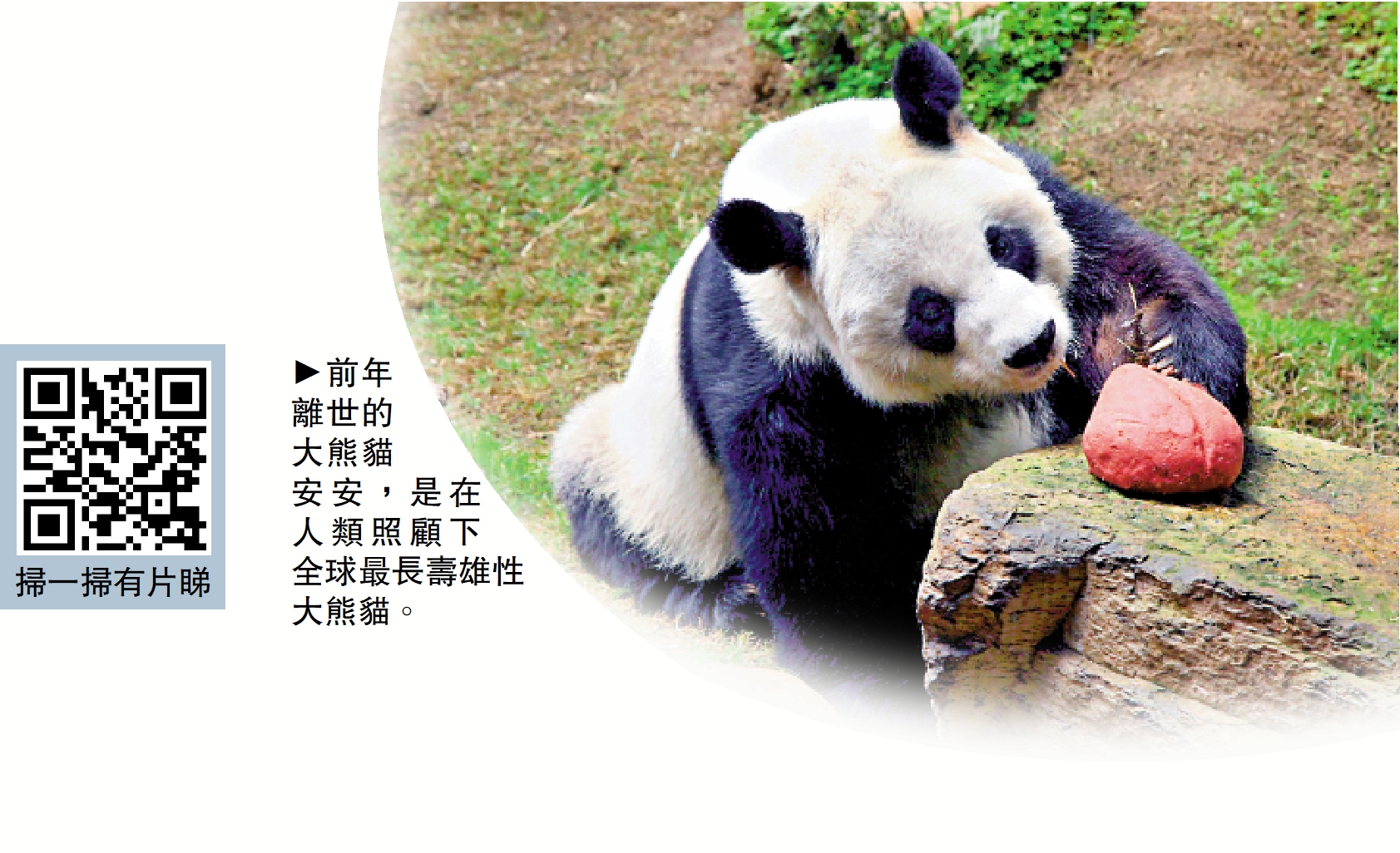 大熊貓安安於1999年3月11日抵港,2022年7月21日離世,享年35歲,相當於人類105歲高齡,是在人類照顧下全球最長壽雄性大熊貓。香港海洋公園研究團隊在2019年7月至2022年1月期間,進行長達31個月的研究,觀察牠的活動軌跡及對棲息地的喜好,累積觀察時數達422.5小時。團隊表示,安安較一般大熊貓長壽,該研究為大熊貓生物學及生態學帶來貢獻。