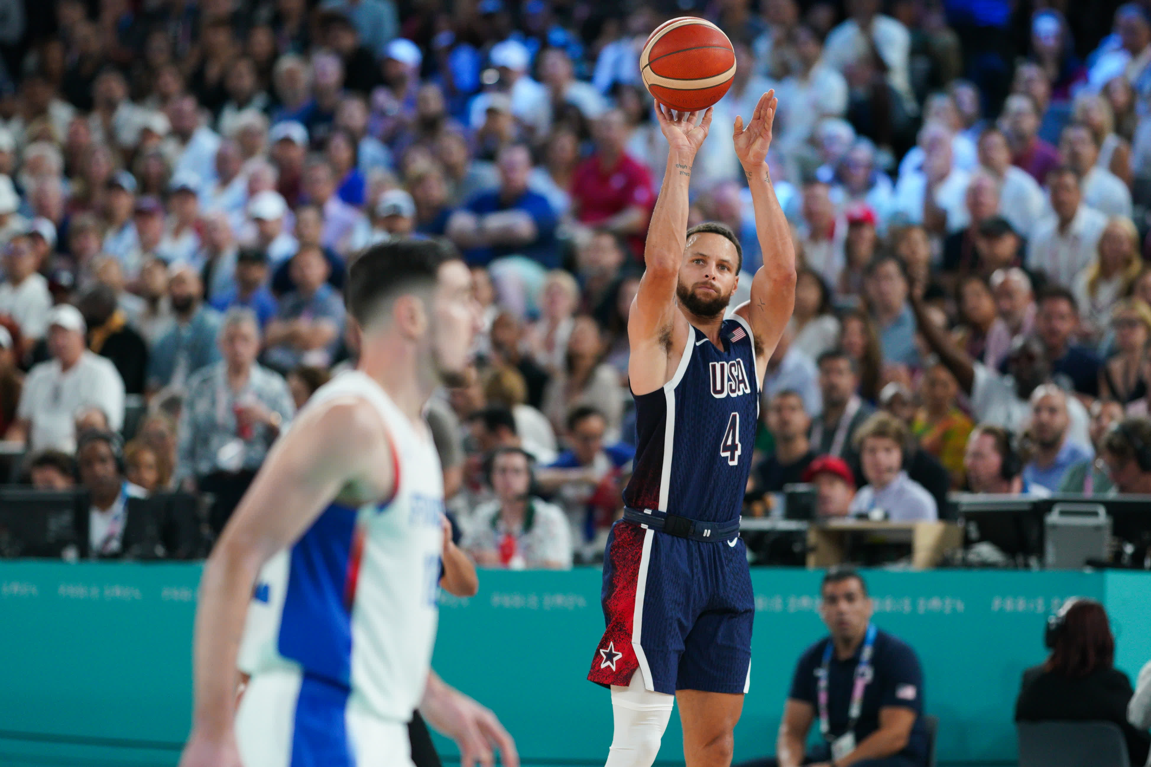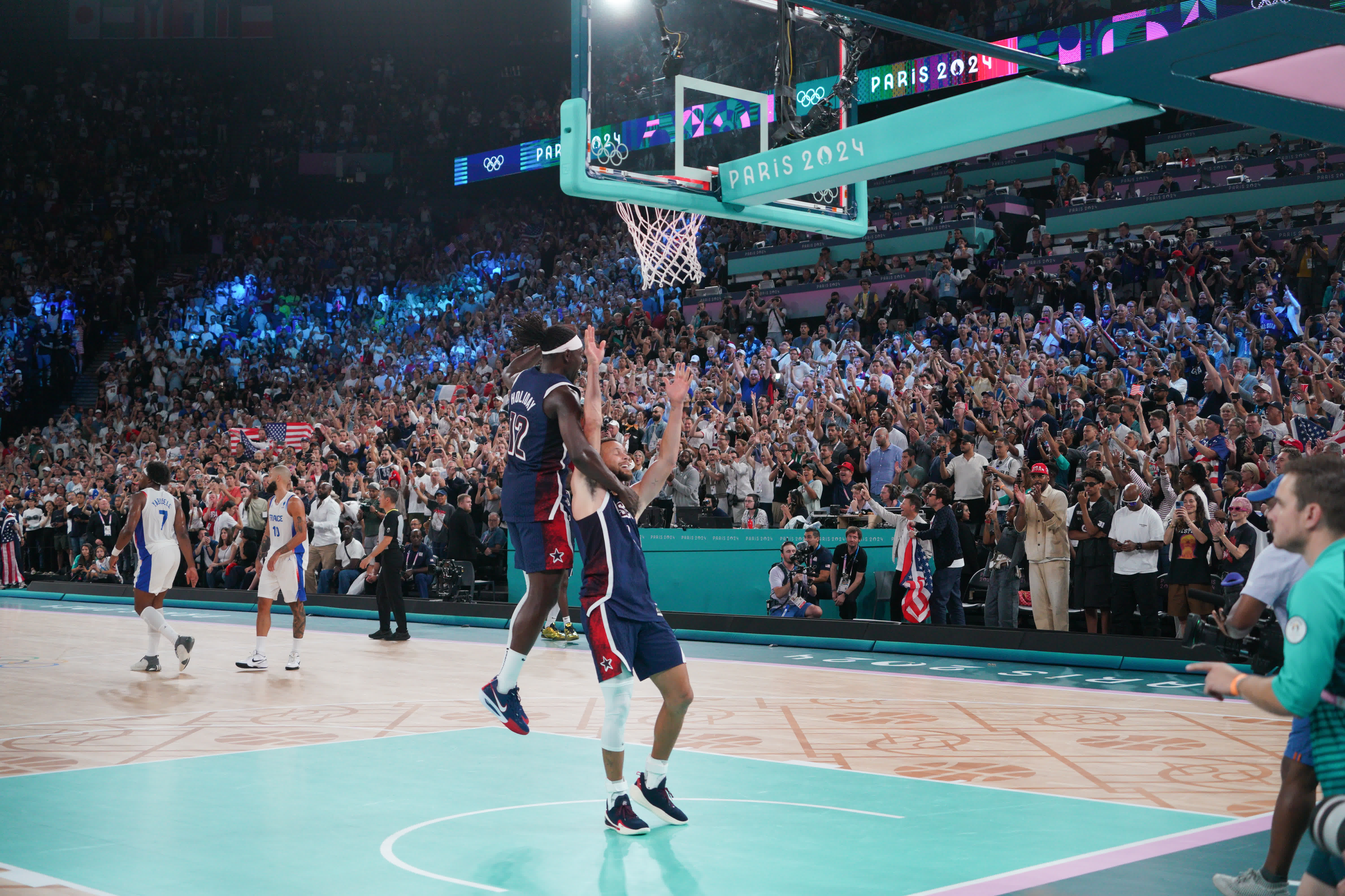 美國隊整場比賽佔據優勢,法國隊多次縮小分差,但未能如願反超。最後時刻,庫里連中四個三分,徹底終結懸念,美國隊成功奪金。