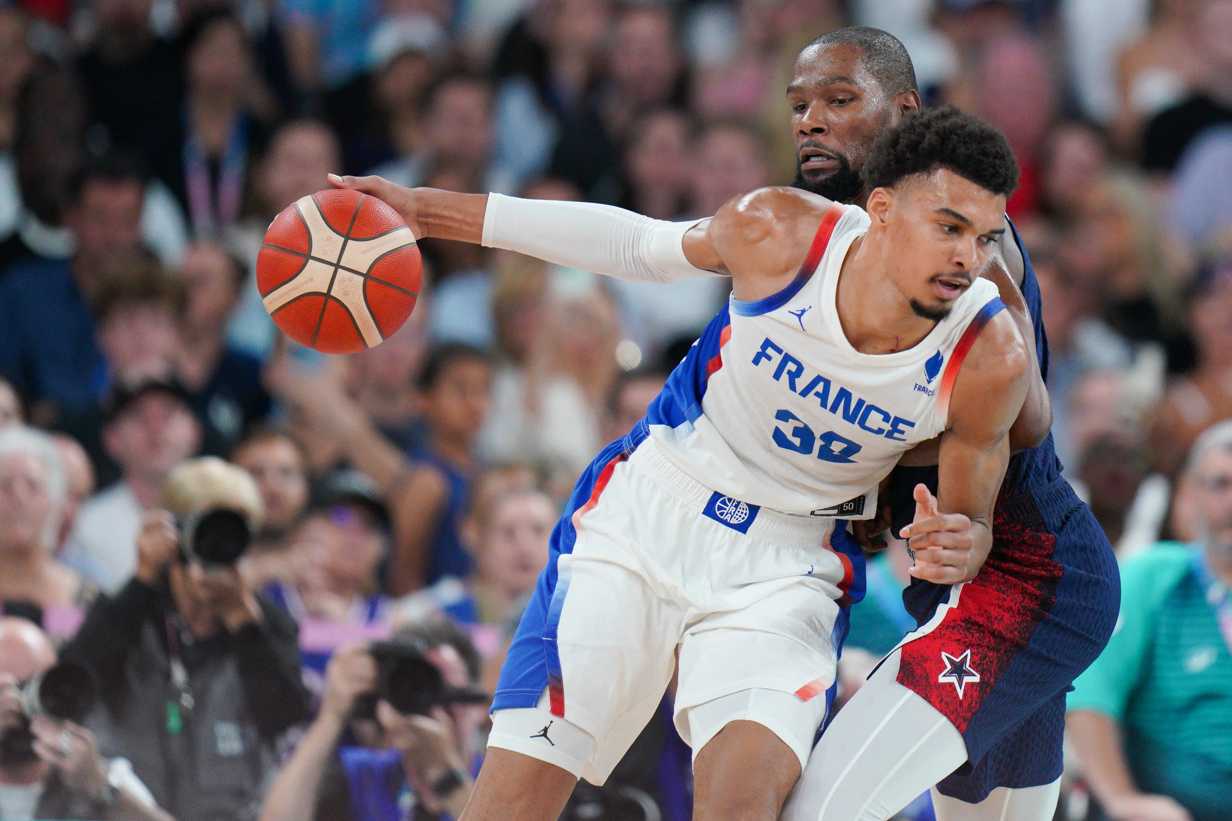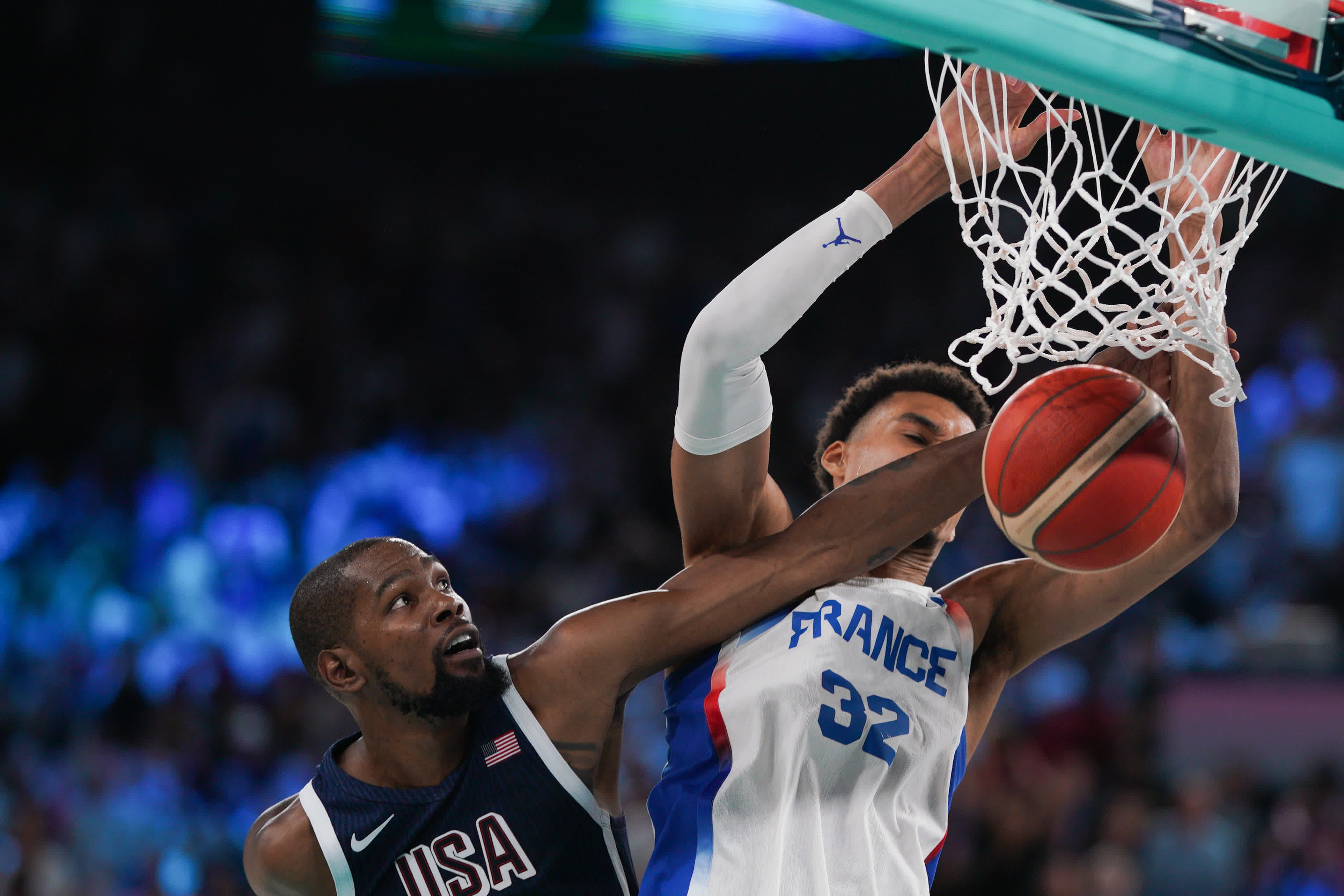 本場比賽法國隊球員文班亞馬貢獻全場最高26分,亞布塞萊貢獻20分。美國隊庫里貢獻全隊最高24分,布克、杜蘭特各得15分,詹姆斯貢獻14分。