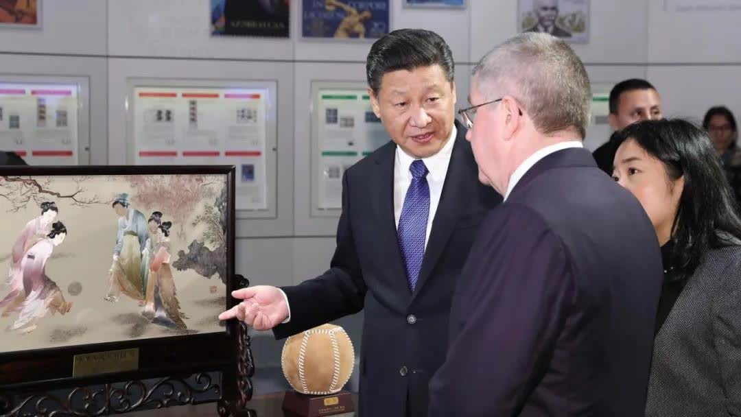 2017年1月,習近平主席在訪問瑞士期間,專程來到坐落在洛桑半山腰的國際奧林匹克博物館。這是中國國家元首首次到訪。習近平主席代表中國向國際奧委會贈送了蘇綉《仕女蹴鞠圖》,並在留言簿上用中文寫下:「弘揚奧運精神,促進和平發展」。