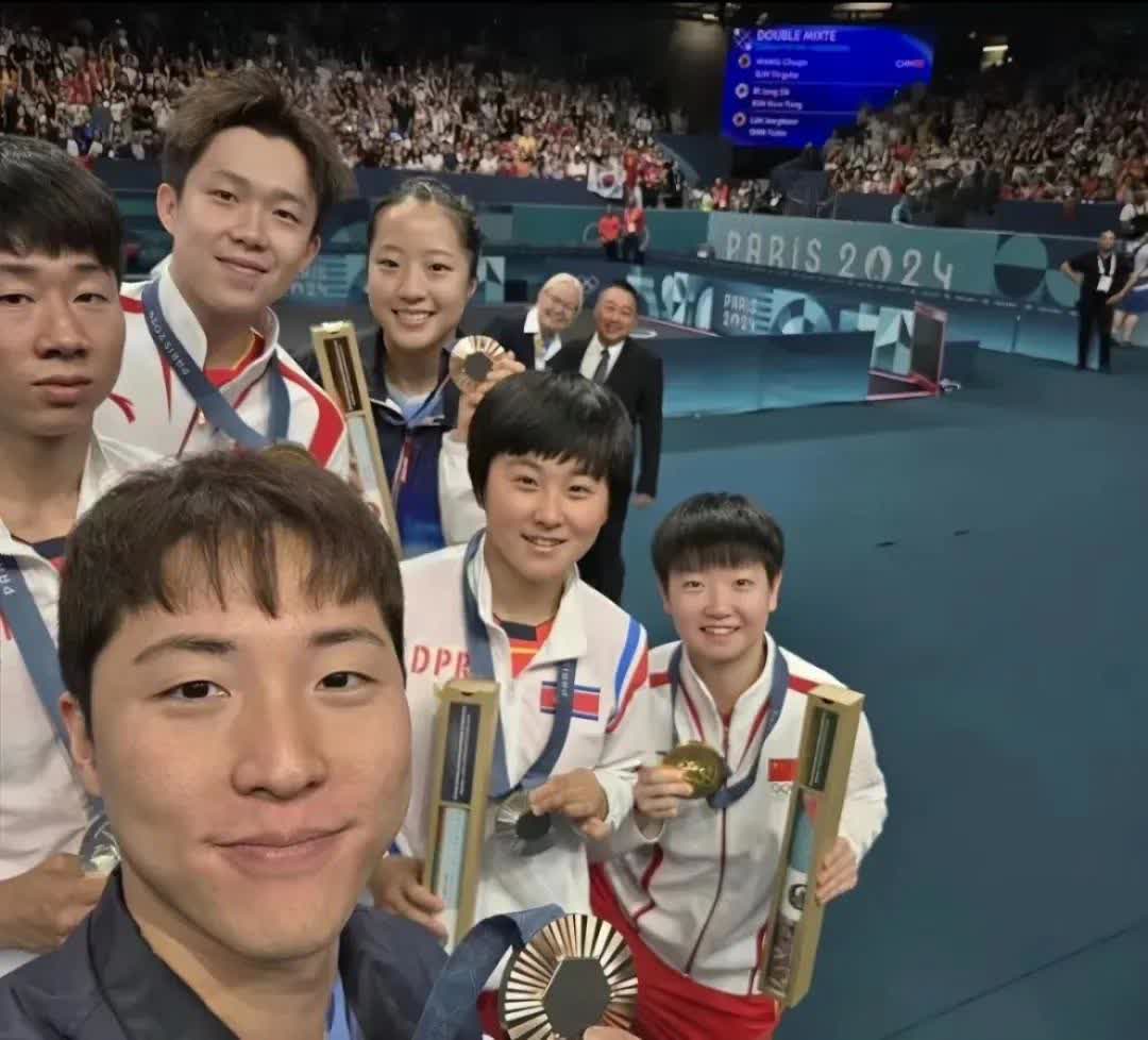 乒乓球賽場上,德國選手奧恰洛夫在比賽之餘也關注着中國隊的表現。馳騁國際賽場十餘年間,他與馬龍、樊振東等國乒隊員有過很多次交手,賽場上的對手,在場下也結下了深厚的友誼。而在混合雙打的頒獎現場,中朝韓三國年輕選手們合影留念,這超越體育、跨越國界的一幕獲得眾多網友點讚。