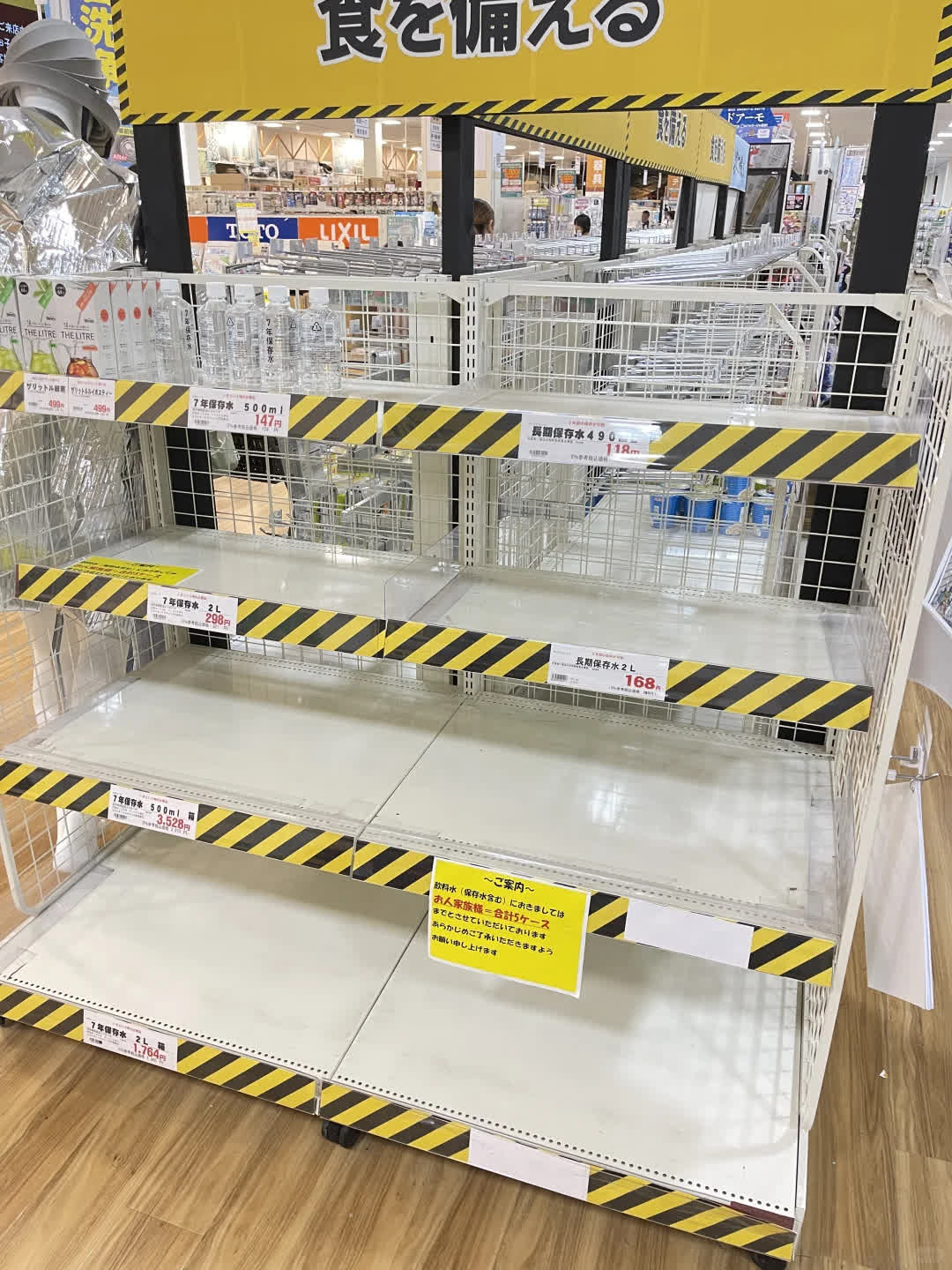 日本超市防災物資短缺,官方呼籲勿過分囤積