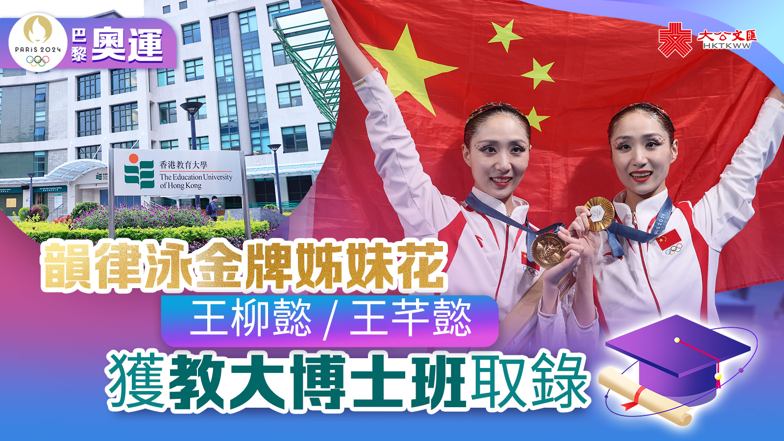 (大公報記者 莫思年)香港高等學府不但培育精英,亦廣納人才。國家隊花樣游泳(韻律泳)運動員王柳懿和王芊懿為雙胞胎姊妹,在巴黎奧運會花樣游泳團體賽為國家隊奪得歷史首金之後,在花樣游泳雙人項目再度強勢奪金,為中國取得本屆奧運會的第38面金牌。二人已獲香港教育大學博士班錄取,教大熱烈祝賀她們再創佳績。