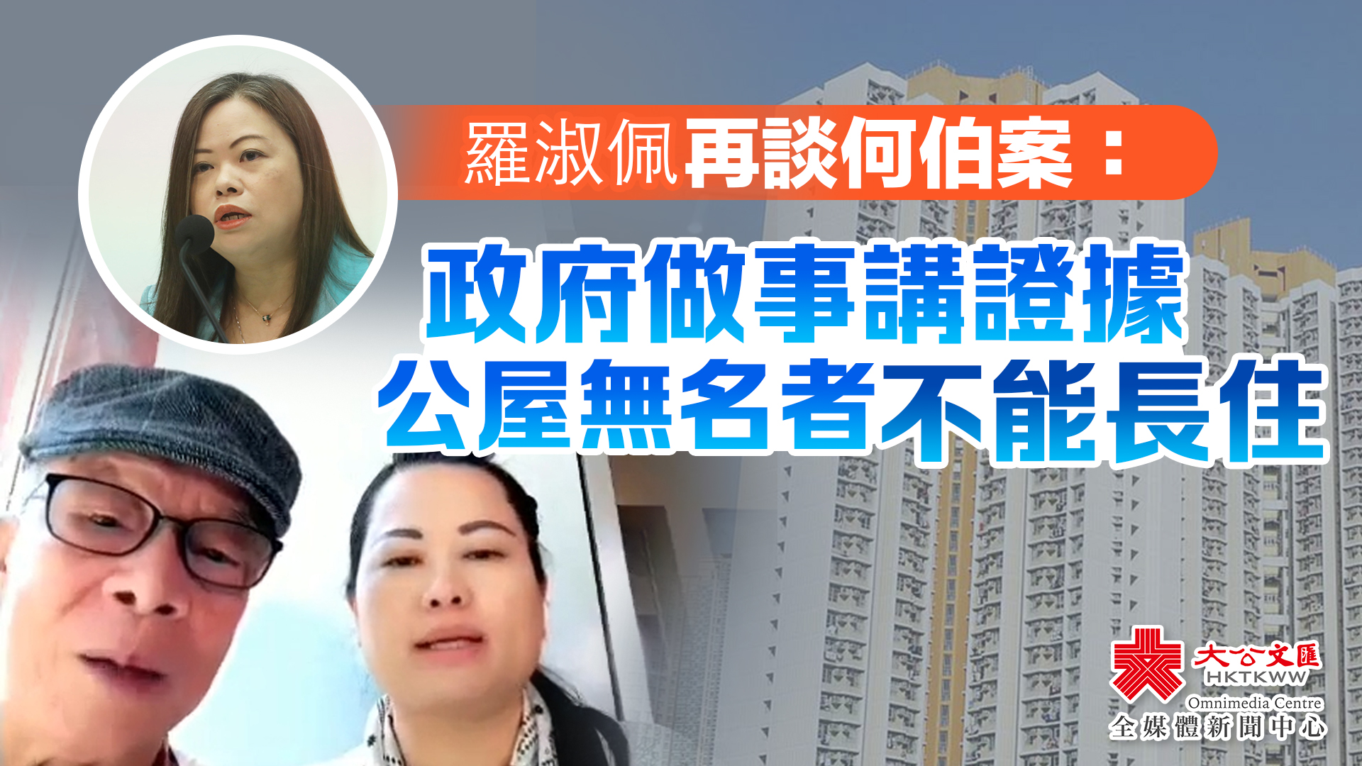 至於何伯「寄住」何太公屋是否違規,羅淑佩就指,公屋租戶規定清晰,公屋住戶名冊上無名者不可以長住,但如果一兩日未必可以知道,承認核查有困難。羅淑佩表示,某些個案受大眾關心,當事人又比較高調,重申政府做事「講事實、講證據」。