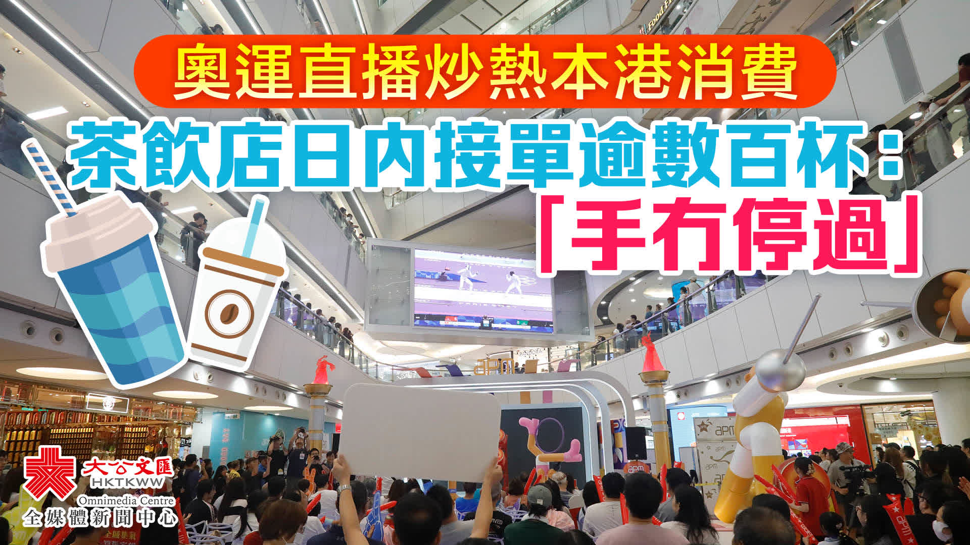 觀塘的apm商場內,美食廣場一間中餐廳的店員向記者表示,過去兩星期奧運期間,周末人潮增加許多,形容是「中午到下晝,只要有直播活動,廣場都會一路坐住人」。不少人則買飲品外賣到直播場地,邊喝邊看比賽,有奶茶店店員表示,近日有過早上至下午接單逾數百杯,形容「手冇停過」。