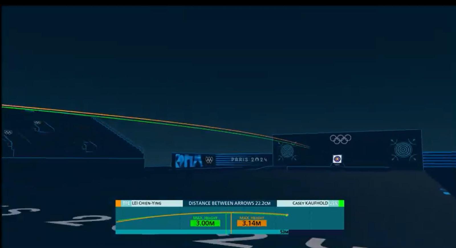 事實上,上述提及的賽事轉播方案不僅應用於乒乓球項目,還在射箭項目中發揮了重要作用。傳統賽事轉播往往無法充分展現射箭運動員的姿勢變化和箭矢飛行的過程,而商湯科技的技術則能夠勾勒箭矢軌跡並提供詳細數據,包括最高點離地距離、速度、飛行距離等。這一技術的應用,令到觀眾能夠更加深入地了解射箭比賽的細節和運動員的表現。