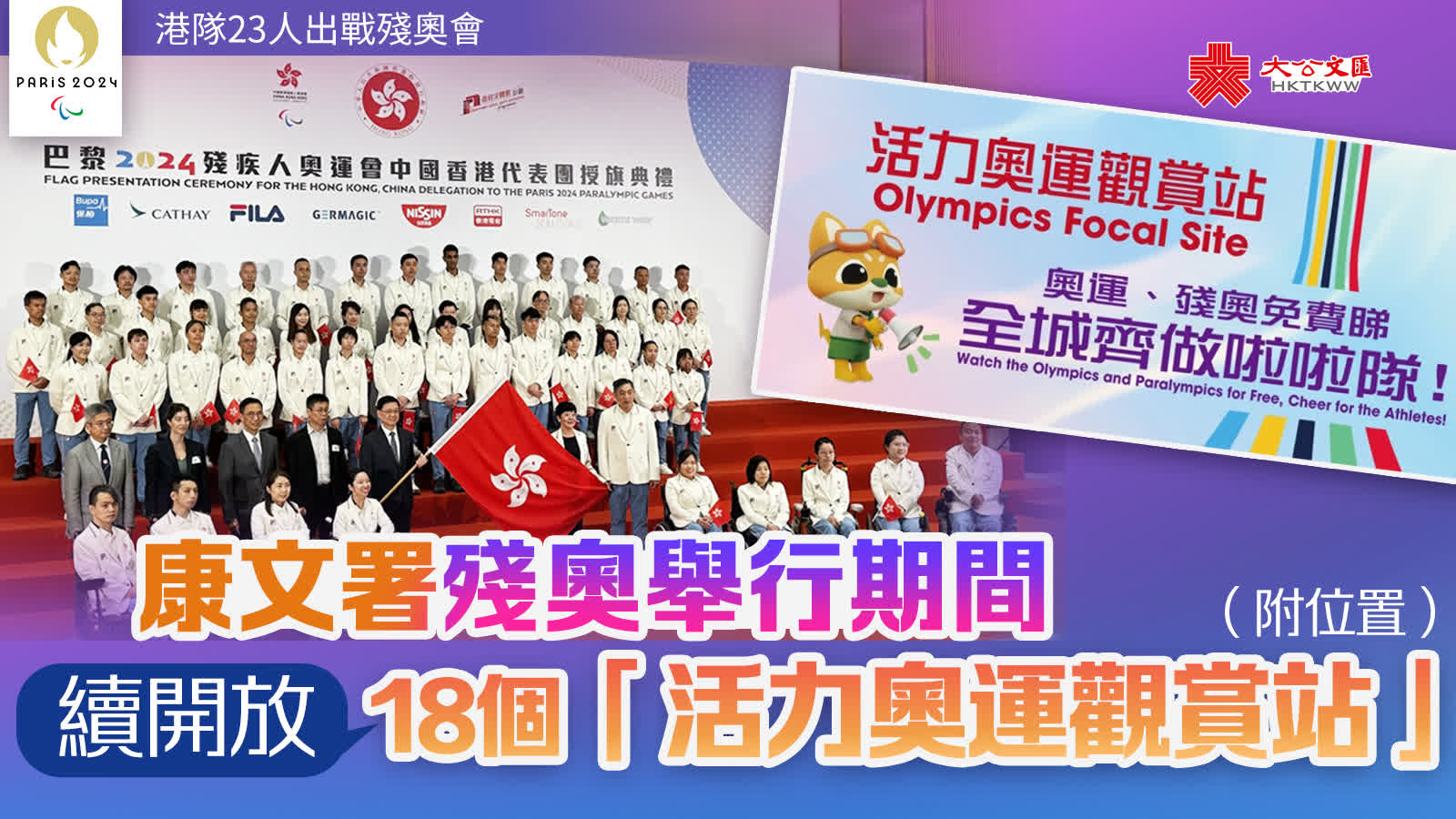 大公文匯全媒體報道,巴黎奧運期間,康文署於轄下18區指定體育館設置「活力奧運觀賞站」播放奧運賽事。據統計,觀賞站於7月27日至8月12日開放期間,有約7萬人次進場參觀。殘疾人奧林匹克運動會將於當地時間8月28日至9月8日舉行,觀賞站將開放至殘奧閉幕。