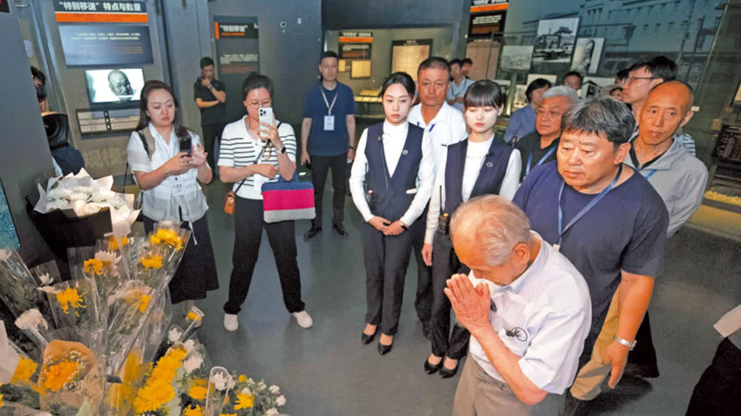 (大公報記者 于海江、王欣欣)「我向中國的受害者表示真誠的道歉、謝罪!」藍天白雲之下,黑色理石的「謝罪與不戰和平之碑」前,94歲的原侵華日軍第731部隊成員清水英男雙手合十,為中國受害者祈福,深深鞠躬,向中國受害者道歉懺悔。時隔79年,重返哈爾濱曾服役的第731部隊舊址,清水英男希望通過自己個人的懺悔道歉行動,喚起更多人的反思和警醒,珍惜來之不易的和平,避免戰爭悲劇重演。