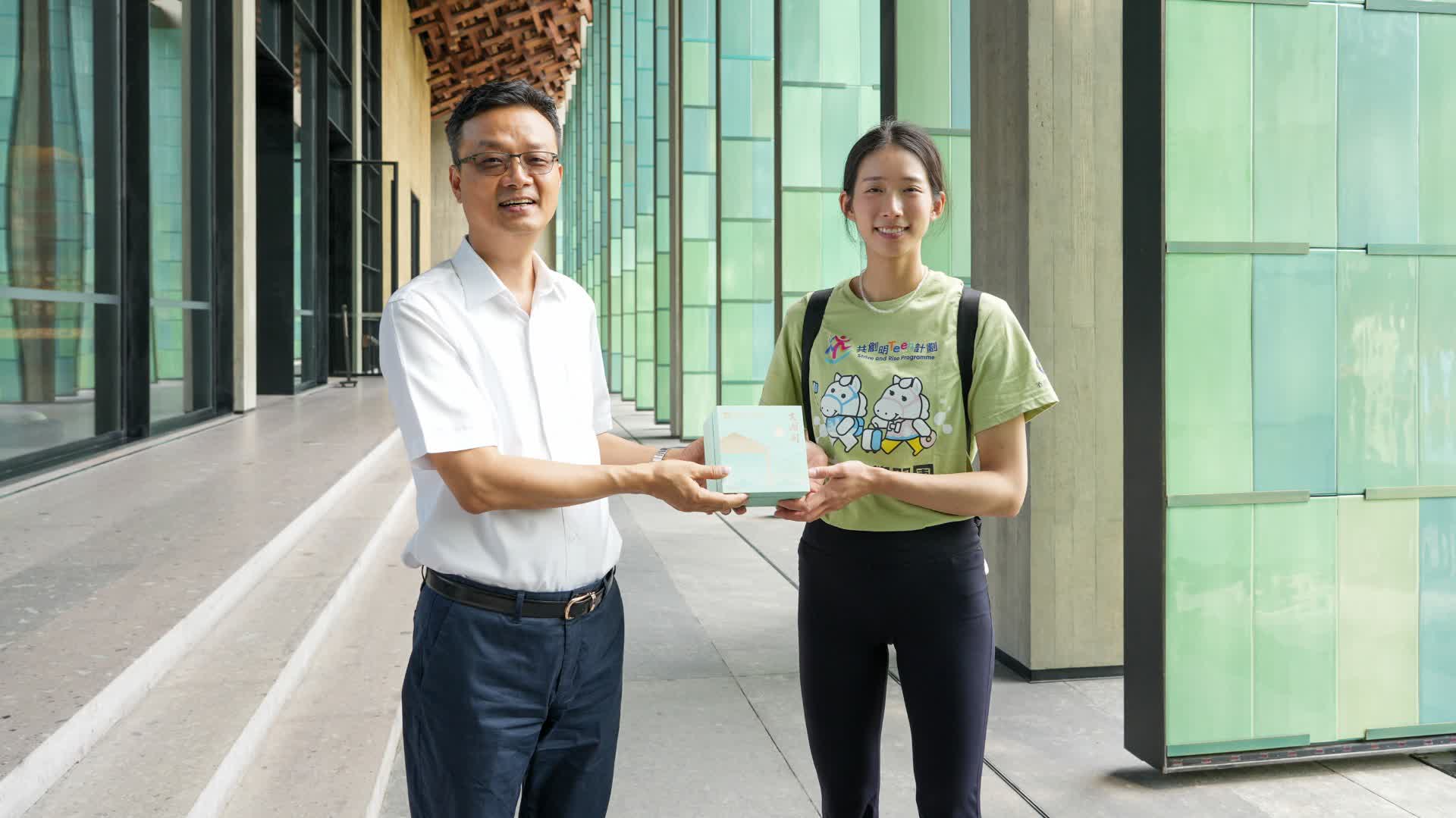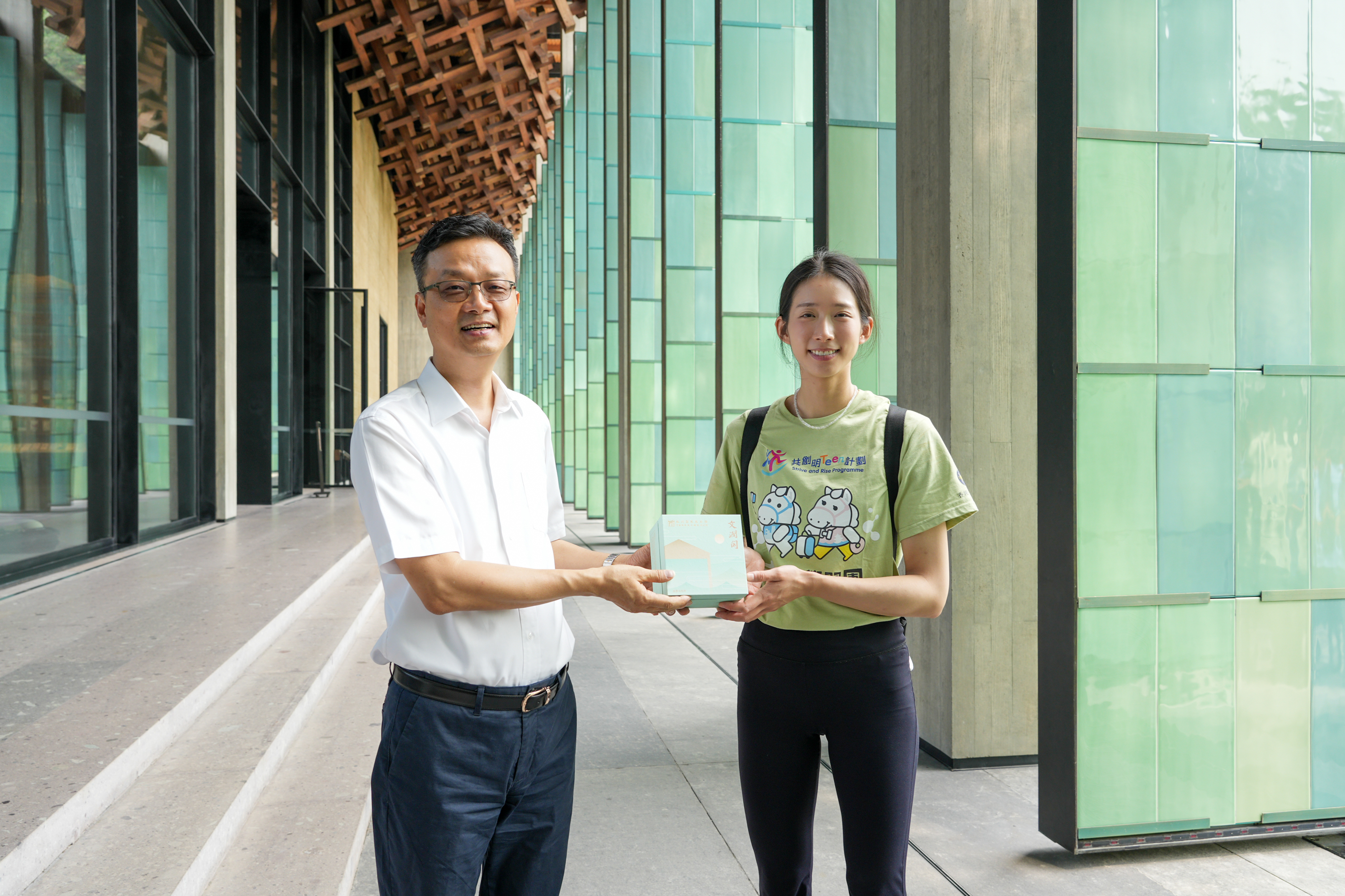 吳雪勇表示,國家版本館是新時代中華文明傳承發展的標誌性文化工程,各位學生來參訪就是一次很好的參與和實踐,回去以後、長大以後要立志做中華文化的傳播者、建設者。他還代表杭州館向香港特區政府和香港賽馬會贈送了館刊《文化交流》、宋韻建築探尋叢書以及展覽系列叢書,並向江旻憓取得奧運冠軍表示熱烈祝賀,贈送了文創紀念品。