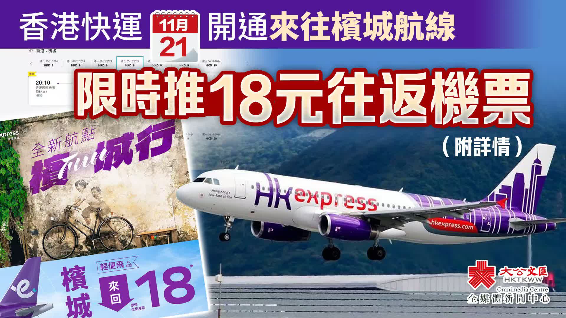 大公文匯全媒體報道,香港快運航空HK Express宣布,11月21日起開通來往香港至馬來西亞有「小香港」之稱的檳城航線,讓市民感受融合馬來風情與舊香港情懷的渡假勝地。快運將提供每日一班往返航班。
